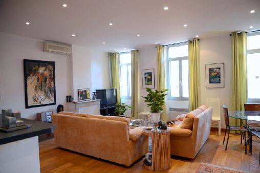 Bel appartement de 100m2 traversant, 2ème étage avec ascenseur, situé dans le Carré d'Or à Cannes, rue Hoche, jolie rue piétonne où se succèdent restaurants, bars, magasins alimentaires, monoprix, galeries lafayettes, traiteurs. Au bout de la rue à 150m, joli marché provençal chaque matin.