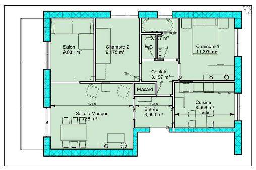 La salle à manger spacieuse avec son coin repas permet de manger dans une ambiance détendue et son salon indépendant laisse la possibilité de faire coucher 2 personnes grâce à un canapé d’angle convertible.
