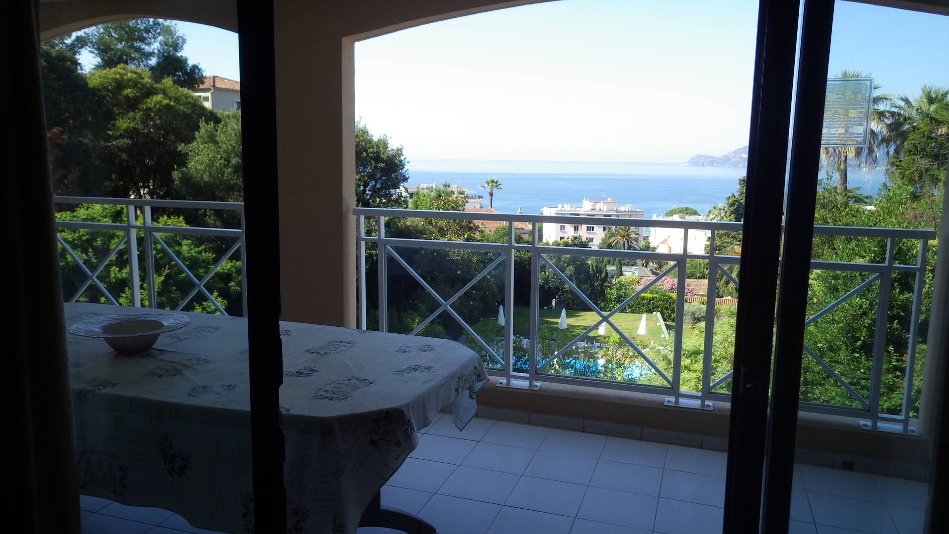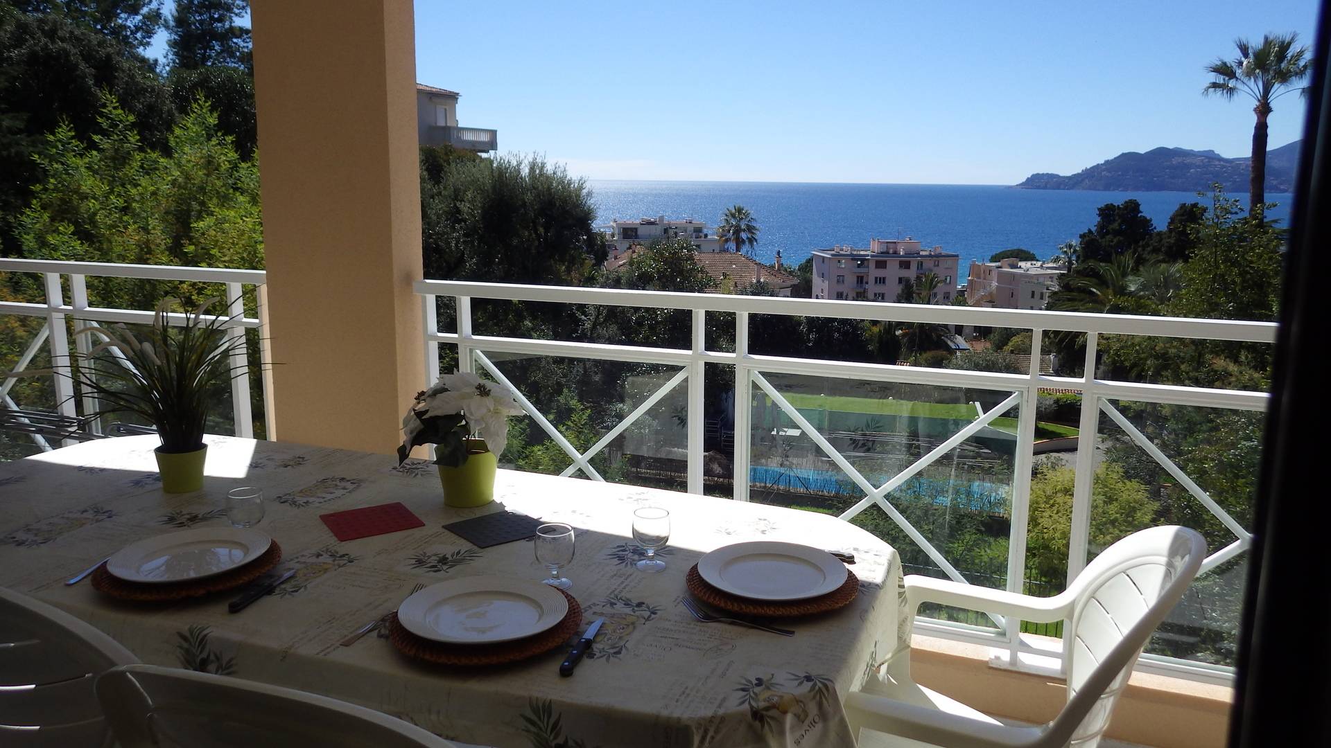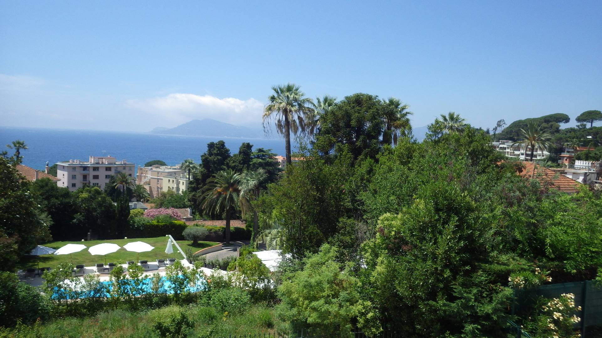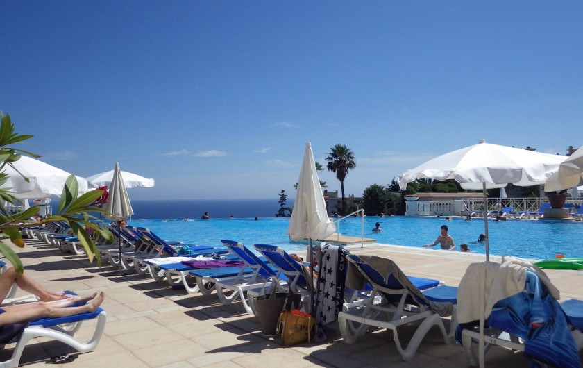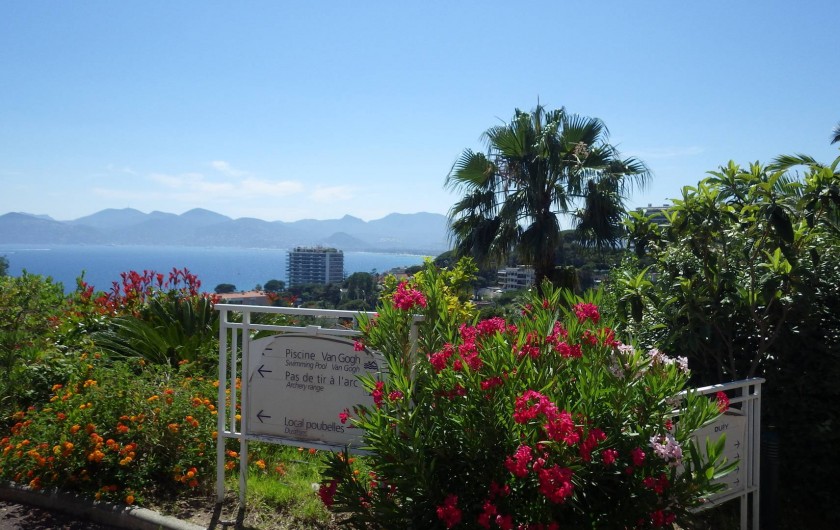 Location Cannes/French Riviera. Quartier croix des Gardes. Appartement dans très belle résidence de tourisme PV "Villa Francia,3 étoiles- vue fantastique sur la grande bleue et le massif de l'esterel, appartement 45 m² + terrasse 15 m² équipée, magnifique piscine à débordement de 1.100 m² avec vue féérique baie de Cannes + 2e piscine, 800 m de la mer, 5 min en voiture du centre de Cannes, de la croisette, dans un parc arboré et fleuri de végétation méditerranéenne de 8 hectares. Restaurant, bar, supérette, lavomatic, jeux pour enfants, terrain multisports sont à votre