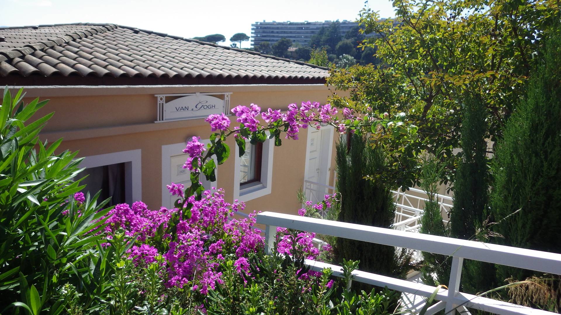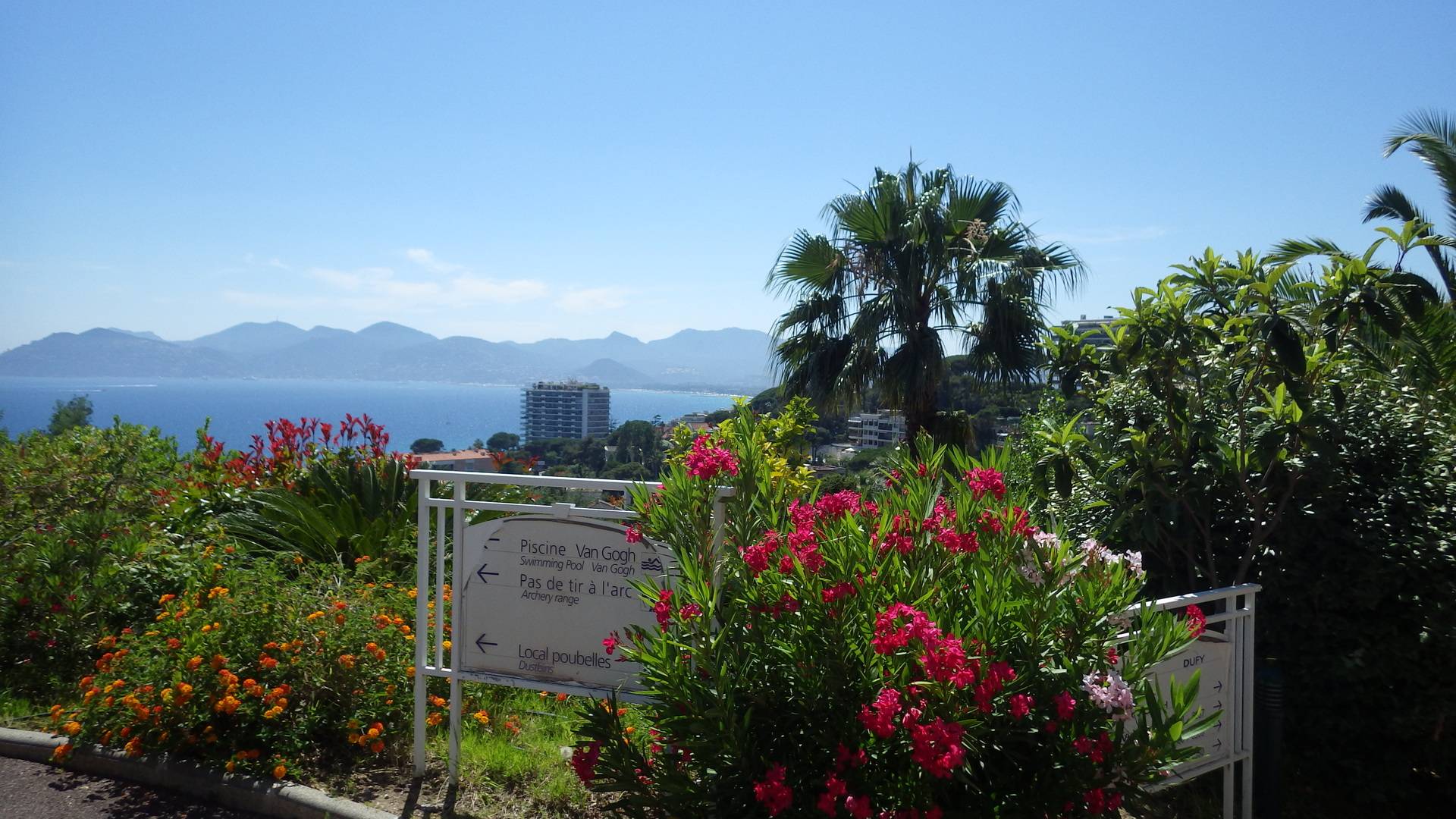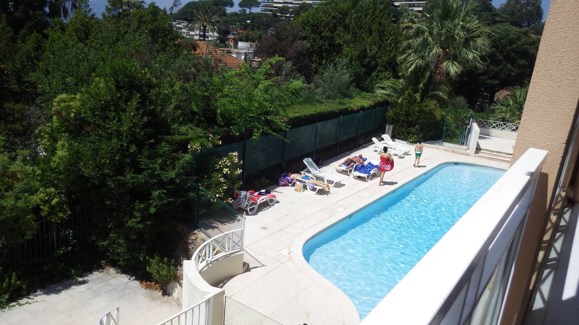 Location Cannes/French Riviera. Quartier croix des Gardes. Appartement dans très belle résidence de tourisme PV "Villa Francia,3 étoiles- vue fantastique sur la grande bleue et le massif de l'esterel, appartement 45 m² + terrasse 15 m² équipée, magnifique piscine à débordement de 1.100 m² avec vue féérique baie de Cannes + 2e piscine, 800 m de la mer, 5 min en voiture du centre de Cannes, de la croisette, dans un parc arboré et fleuri de végétation méditerranéenne de 8 hectares. Restaurant, bar, supérette, lavomatic, jeux pour enfants, terrain multisports sont à votre
