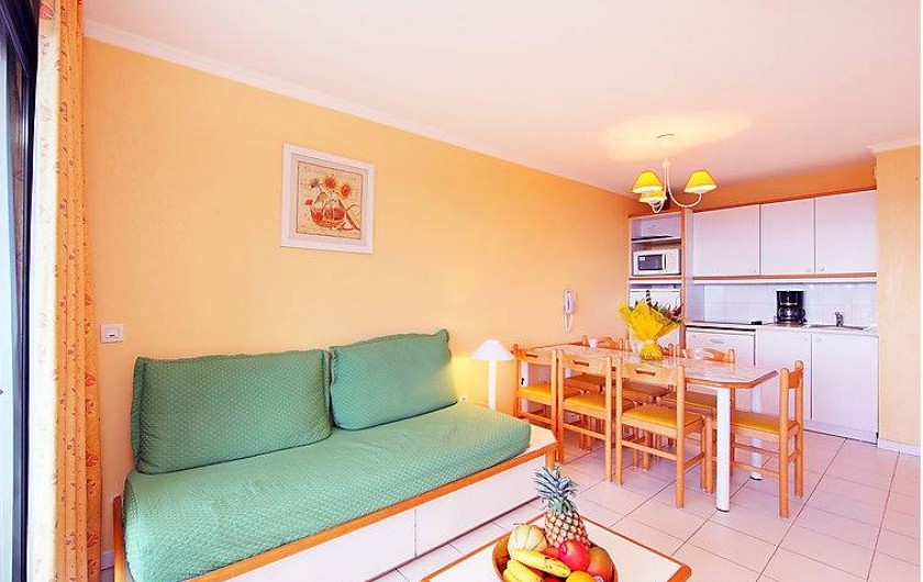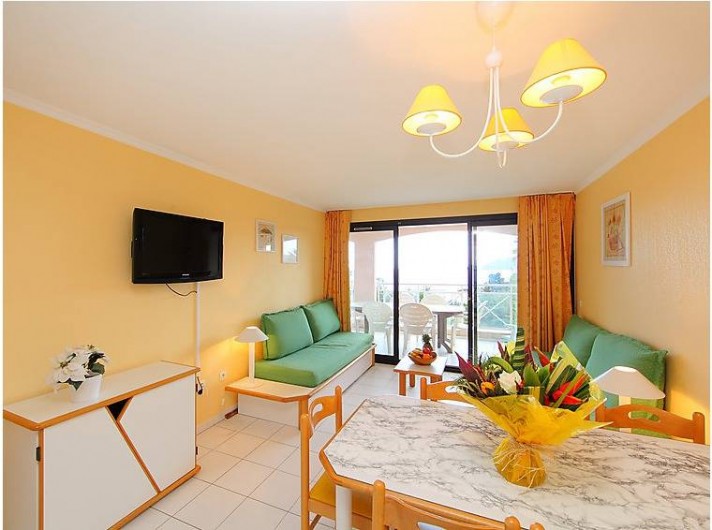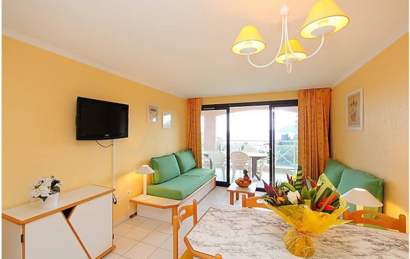 Séjour/salle à manger (couchage 2 personnes), TV écran plat TNT (chaînes internationales), 2 chambres l'une avec lit double donnant sur la terrasse vue mer, l'autre avec 2 lits superposés