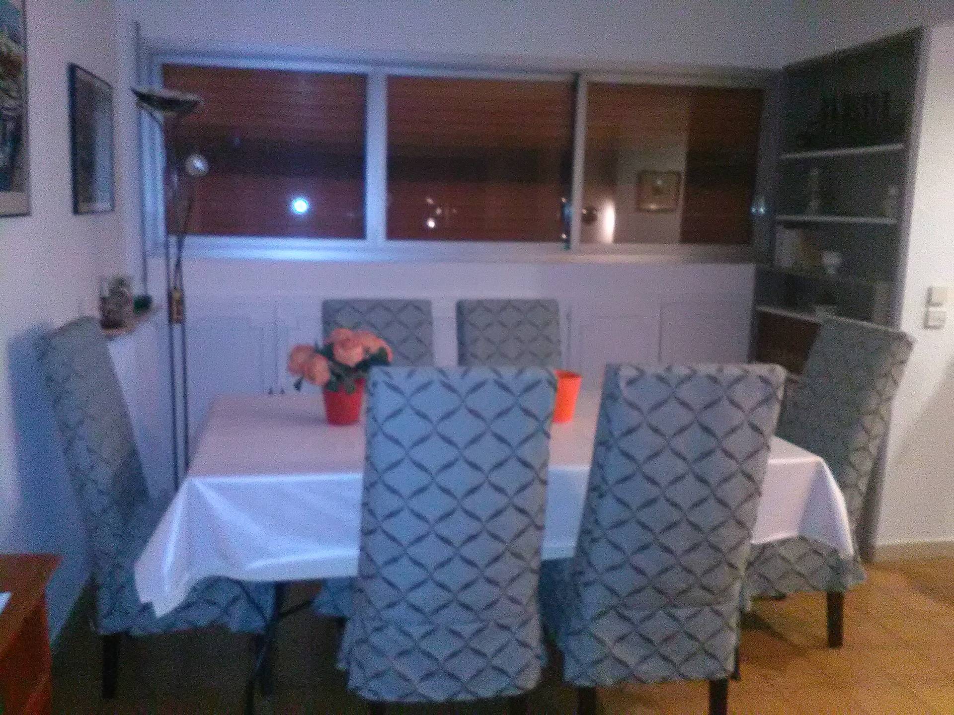 Séjour avec salon et canapé convertible 2 couchages, TV et salle à manger pour 6 personnes.