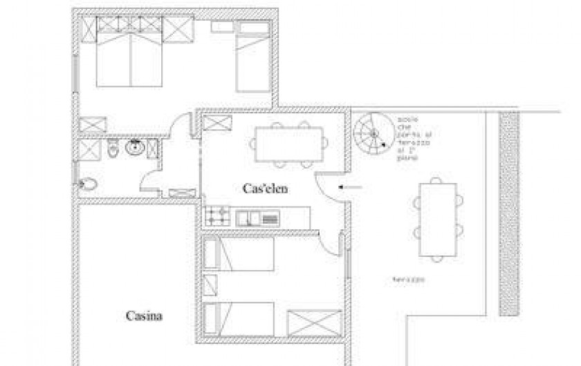 deux appartementsune avec deux chambres à coucher, salle de bains, cuisine, terrasse: "casina" et "cas'elen" pour 5 personnes