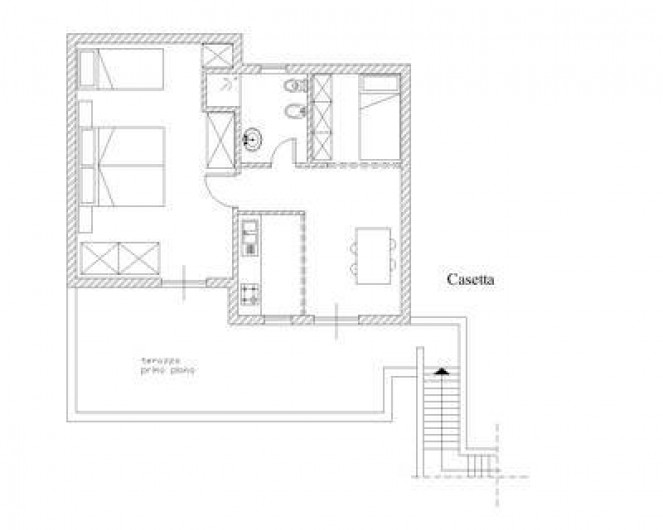 deux appartements avec une chambre à coucher, salle de bains, cuisine, terrasse: "casetta" et