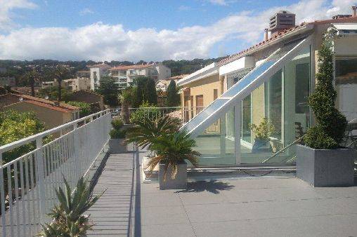 L'appartement dispose d'une terrasse de 50m2 avec barbecue, vue à 360°mer château et cap canaille.
