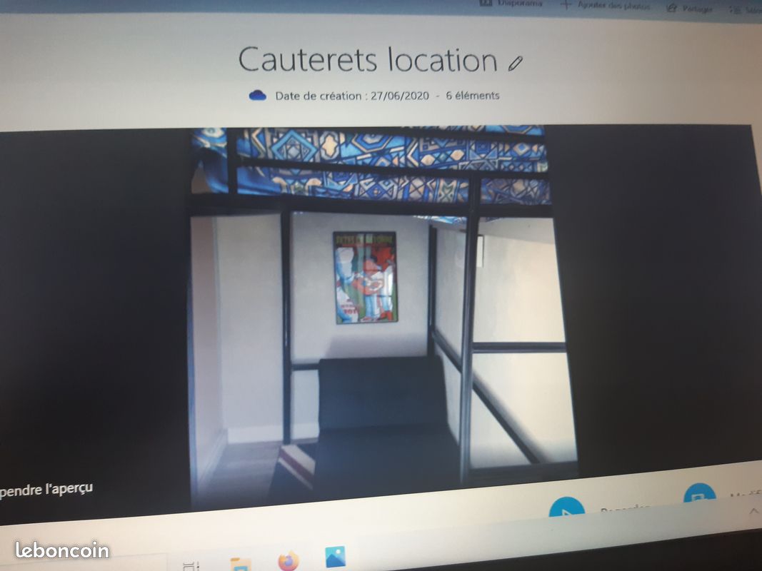 Appartement 33 mètre carrés refait a neuf, plein sud . Dans petite résidence de caractère .Une grande chambre avec placard . Une alcove avec mézanine et couchage dessous . coin vie avec BZ et cuisine équipée , four , micro onde , lave vaisselle , telé . Salle d'eau . A 5mn du centre de Cauterets et des thermes qui proposent des cures en rhumatologie et OLR également t pour les enfants ts . Cité propice au vélo et rendo. Ainsi que le ski l'hiver . C'est la station la plus enneigée des Pyrénées