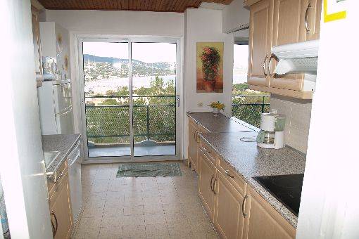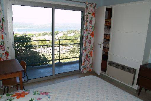 Location d'un Grand appartement tout confort avec vue panoramique sur la mer. Balcon 20 mètres de long; cour et jardin privés à l'appartement; arbousier, lauriers roses...