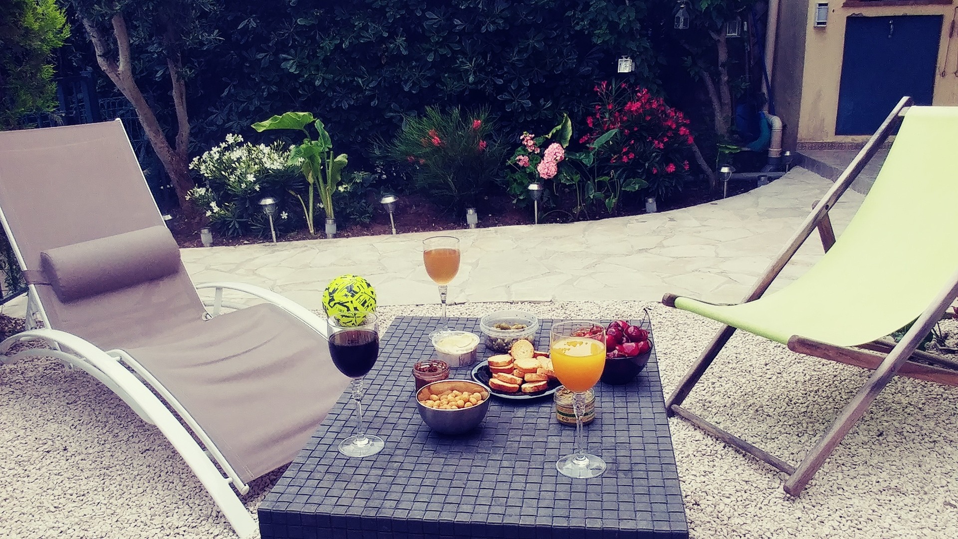 L'extérieur : - 4 Chaises longues + une petite table d'appoint -2 transats - Table de jardin et ses 6 chaises - Barbecue