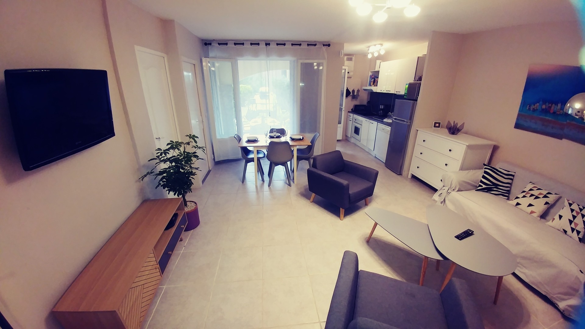 - Un séjour avec canapé convertible en 140 x 190, TV + Wifi.