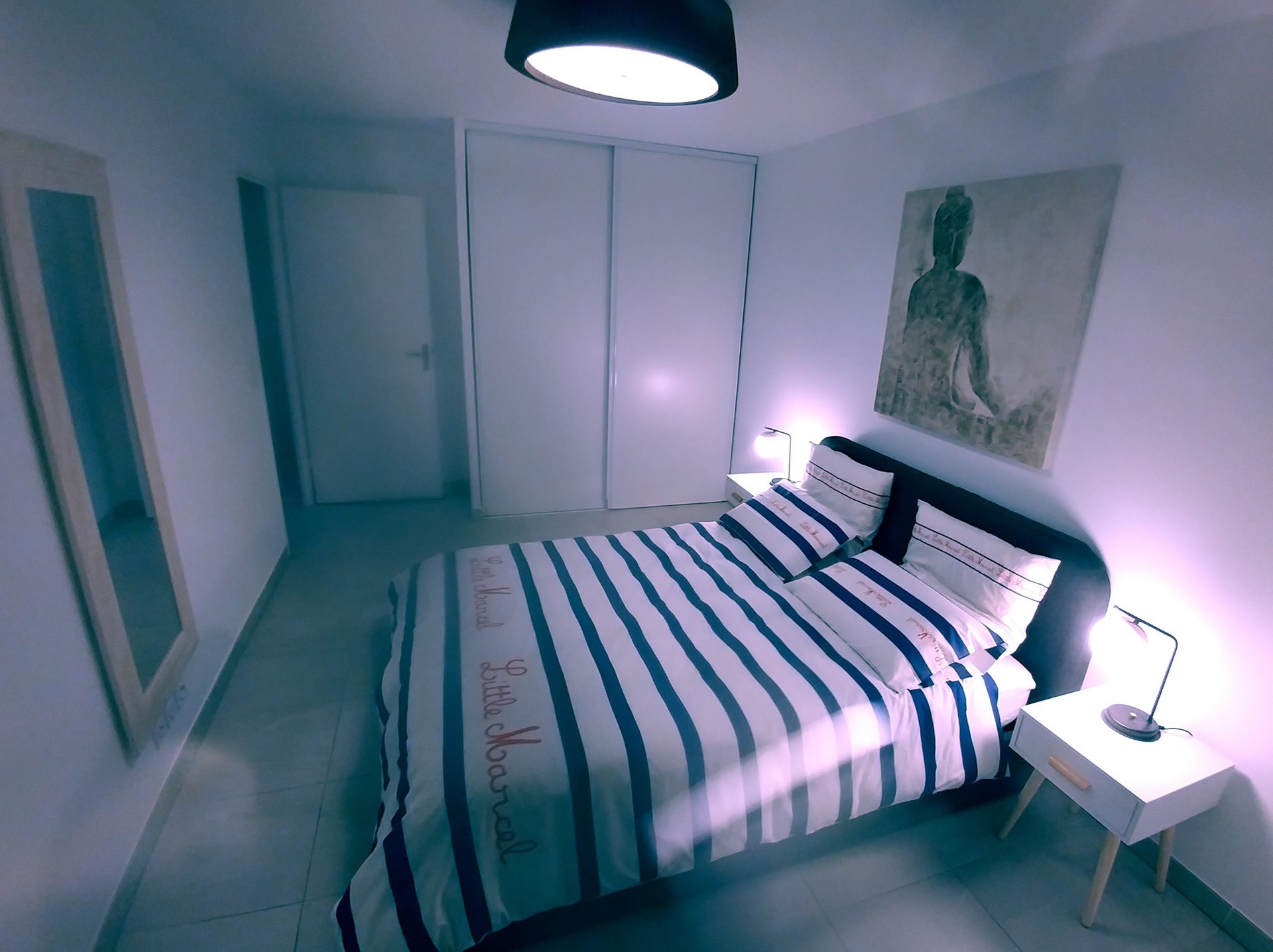 - d'une chambre séparé d'environ 15m² avec un lit double de 160X200 avec un grand dressing