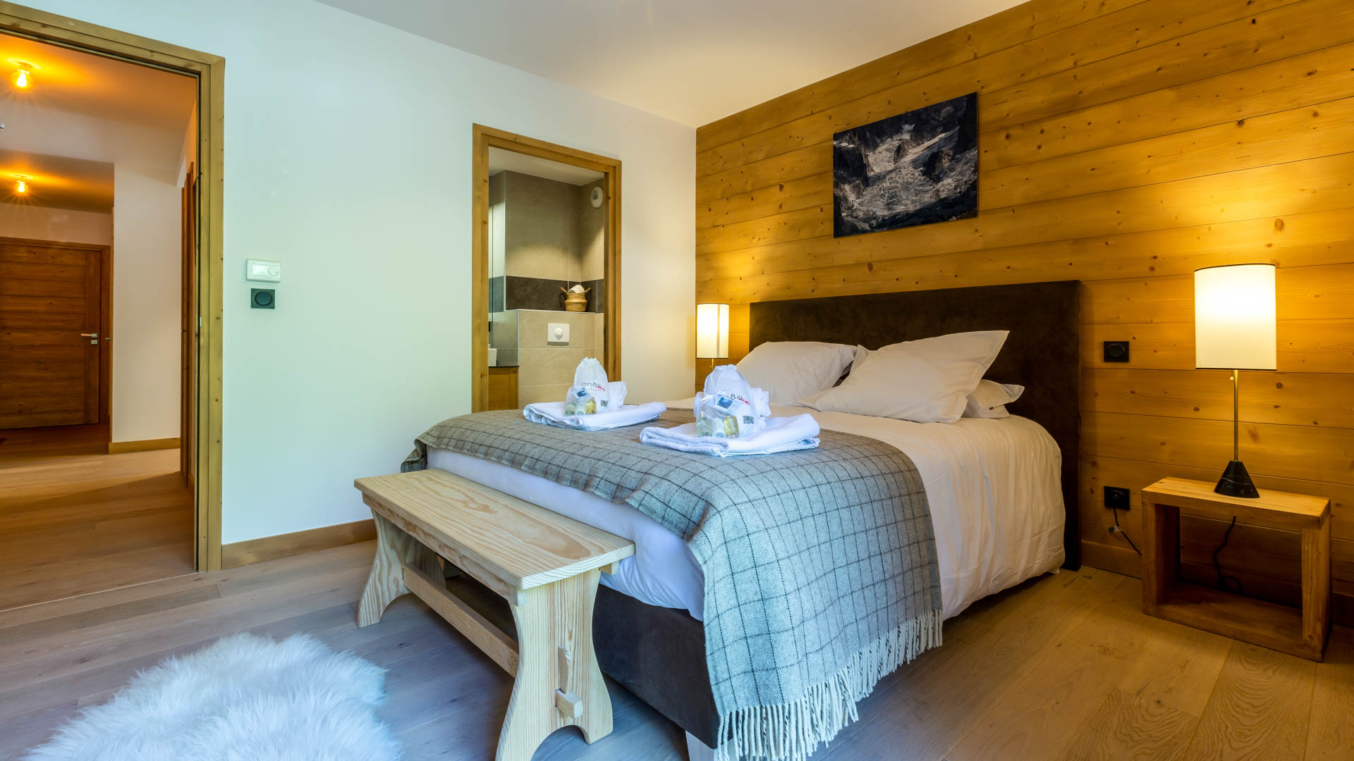 L'appartement comporte trois chambres : une chambre double avec salle de