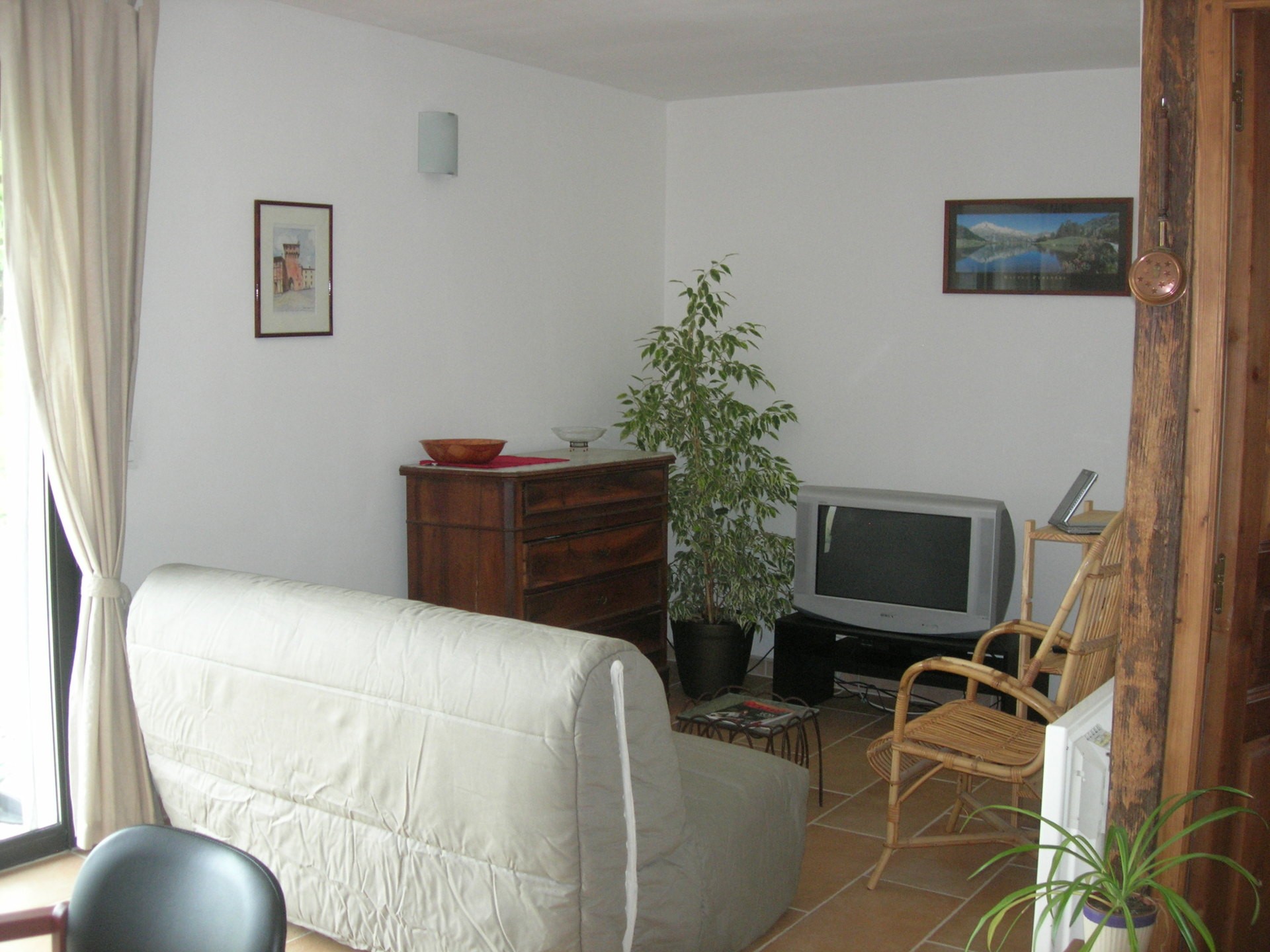 - Petit salon avec canapé convertible ( 2 couchages supplémentaires), une commode rangement, TV , et accès internet.
