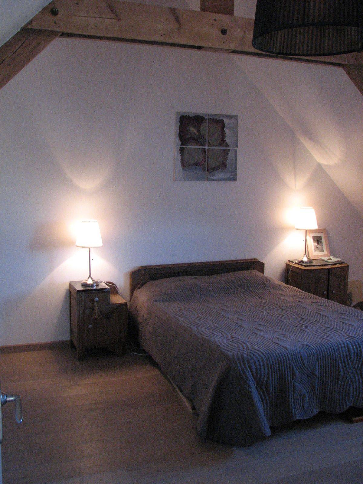 Dessins contemporains et peinture d'art, plancher de chêne, touches de brocante, vinyles et jazz: tout ensemble pour