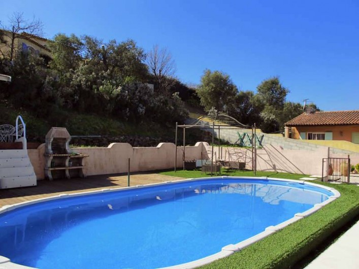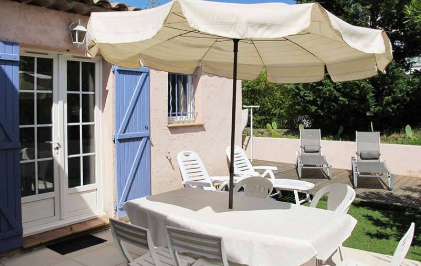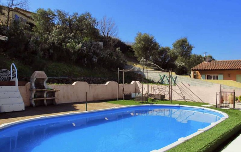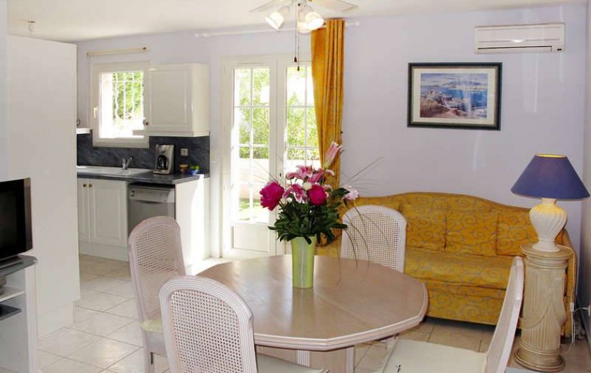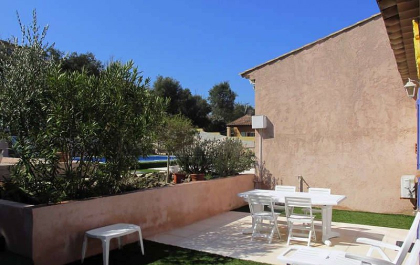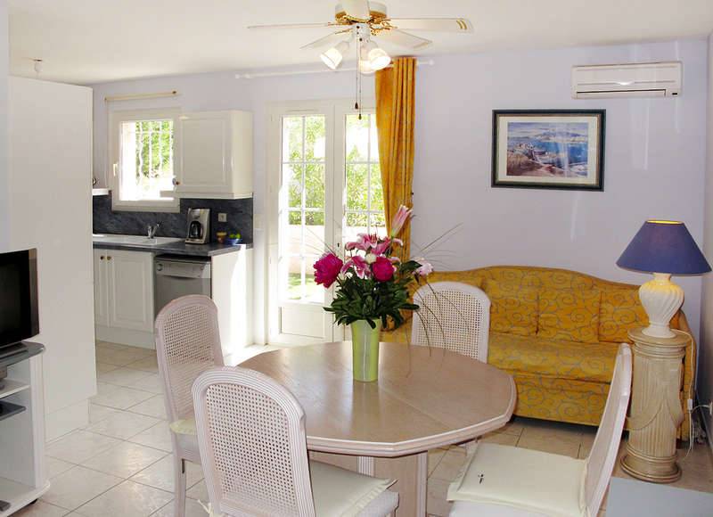 Dans un endroit calme et reposant aux portes de SAINT TROPEZ SAINTE MAXIME CAVALAIRE SUR MER LE LAVANDOU BORMES LES MIMOSAS a COGOLIN loue appartement de 50 m2 dans villa avec piscine a partager avec vue sur le massif des Maures.Cet appartement possède une terrasse avec tonnelle.L'appartement se compose de deux chambres avec lits 1 de 140 et 1 de 160. W.C. indépendants.Salle de bain avec baignoire et douche lave linge.Une cuisine entièrement équipée avec frigo congélateur four a micro ondes table de cuisson électrique four électrique lave vaisselle Le salon se compose d'une table … hexagonale avec chaises assorties d'un canapé télévision WI FI .La terrasse est équipée d'une table avec chaises en fer forgé. Parking pour votre véhicule dans la propriété. Lire moins Lire la suite