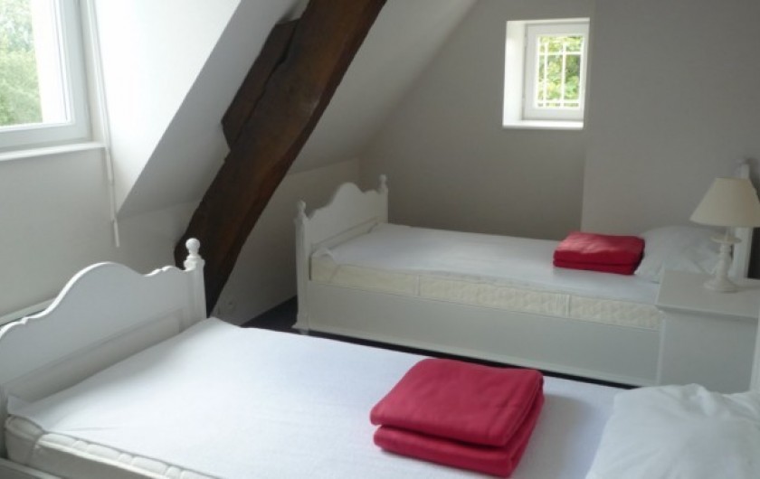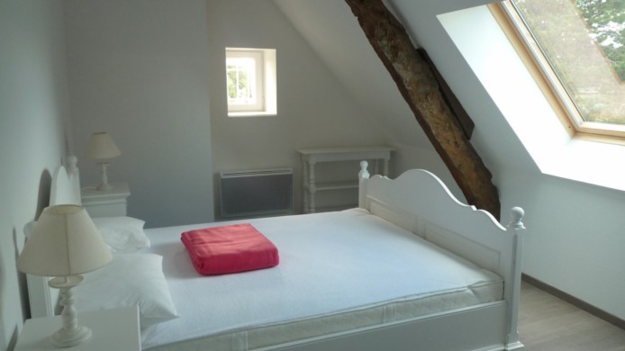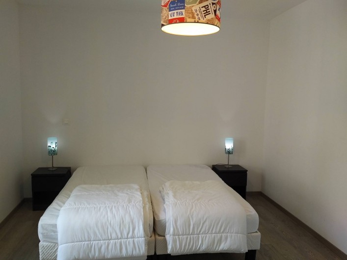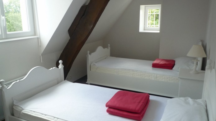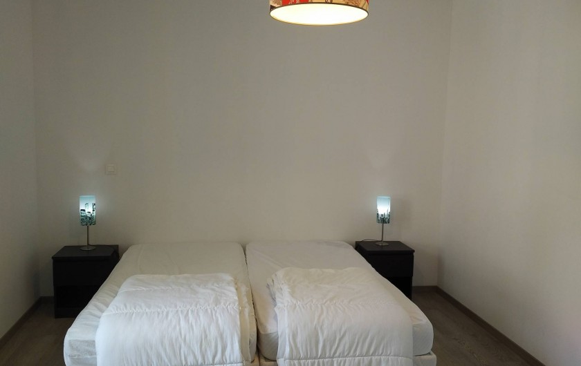 Il dispose d'une chambre avec un lit de 2 personnes et une chambre avec deux lits de 1 personne, une grande salle d'eau (douche) et wc.