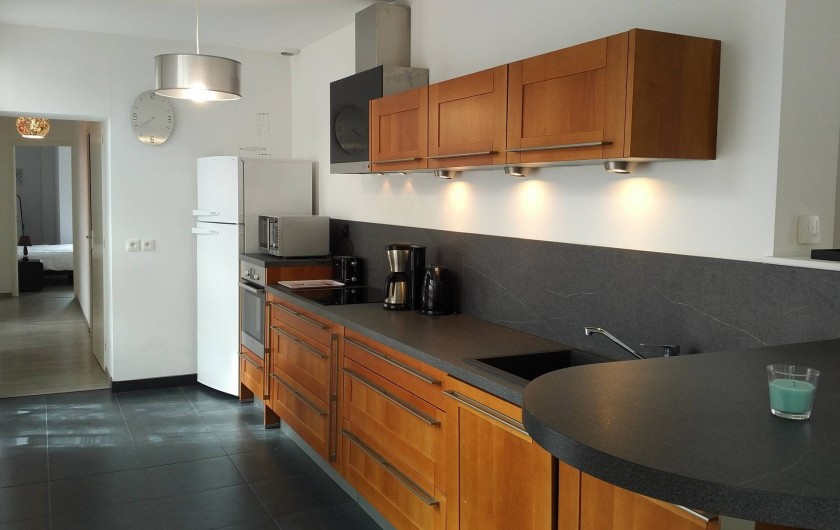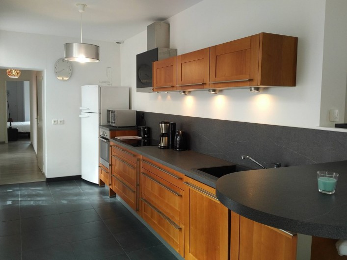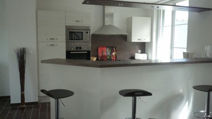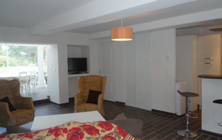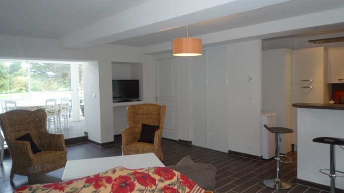 L'appartement se compose d'un grand salon séjour avec canapé, et 1 lit clic clac de 2 personnes, une belle cuisine ouverte.