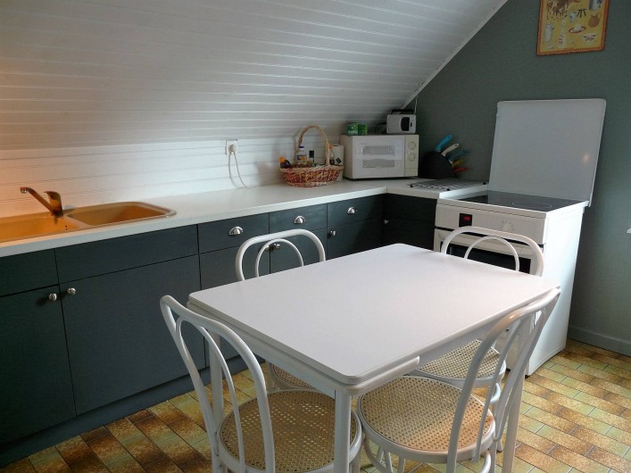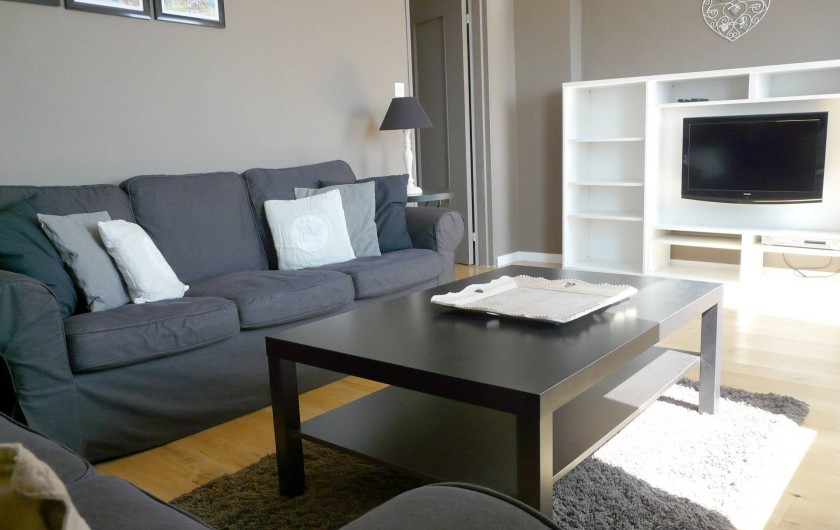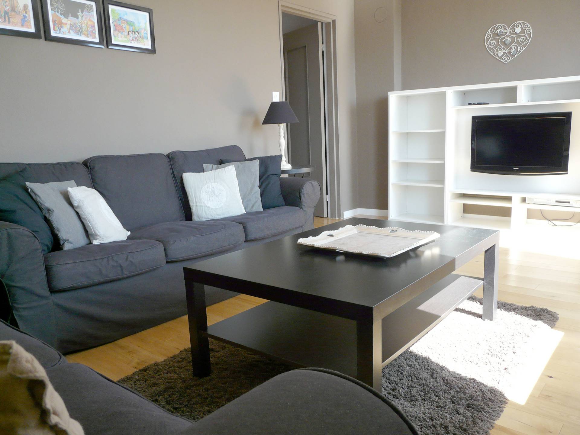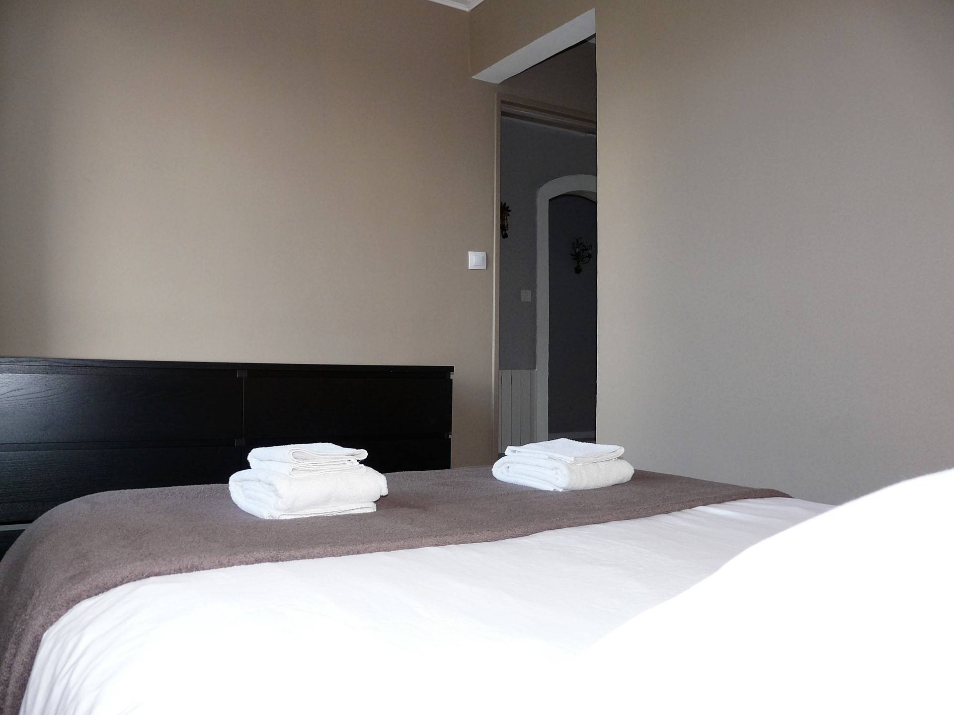 (écran plat, lecteur DVD, deux canapés,...), une cuisine équipée (plaques à induction, four électrique, micro-ondes, réfrigérateur, bouilloire éléctrique, machine à café filtre et senseo, ...), deux chambres (1 lit double 140x190cm et 2 lits simples 90x140cml, 1 salle de bain (baignoire, radiateur sèche-serviettes), 1 wc et 1 buanderie (machine à laver, séchoir). Les draps, les serviettes et le panier séjour sont compris dans le prix. Les lits sont faits à votre arrivée. Location minimum à partir de 2 nuits.