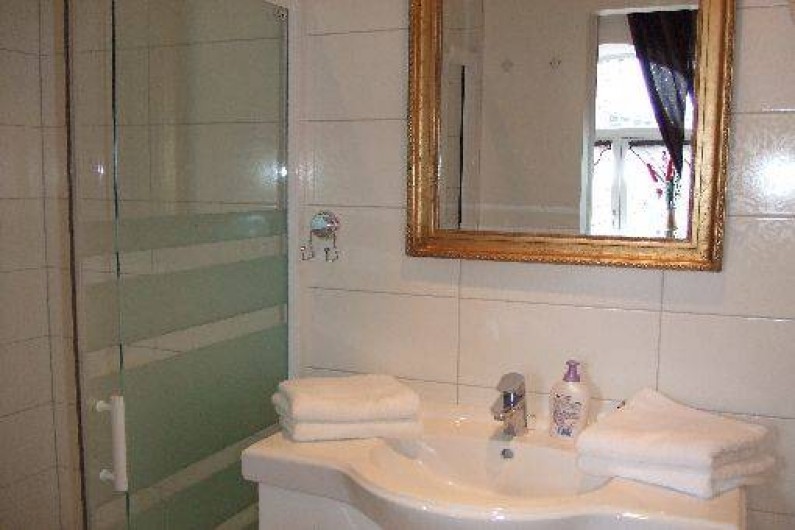 Salle de Bain: comprenant une machine a lavé, une grande douche, séche cheveux, wc.