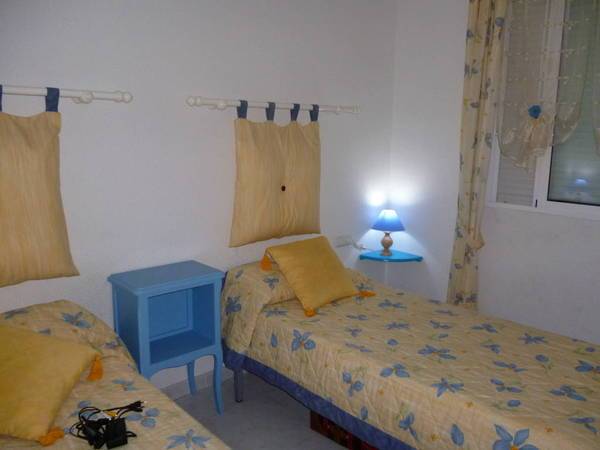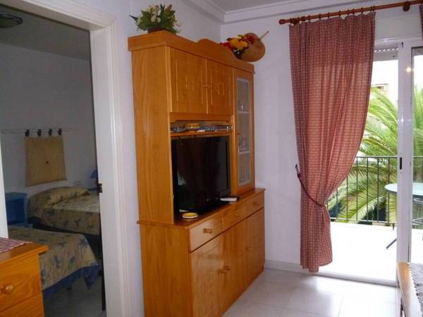 Costa Blanca. Appartement, 5 personnes, cuisine équipée (lave-linge, réfrigérateur, congélateur), séjour/salon TV, 2 chambres (lit 140, 2 lits 90), solarium avec douche et barbecue. Terrasse. Climatisation. Piscine dans résidence. 200 m plage. Parking privé. Proximité commerces.