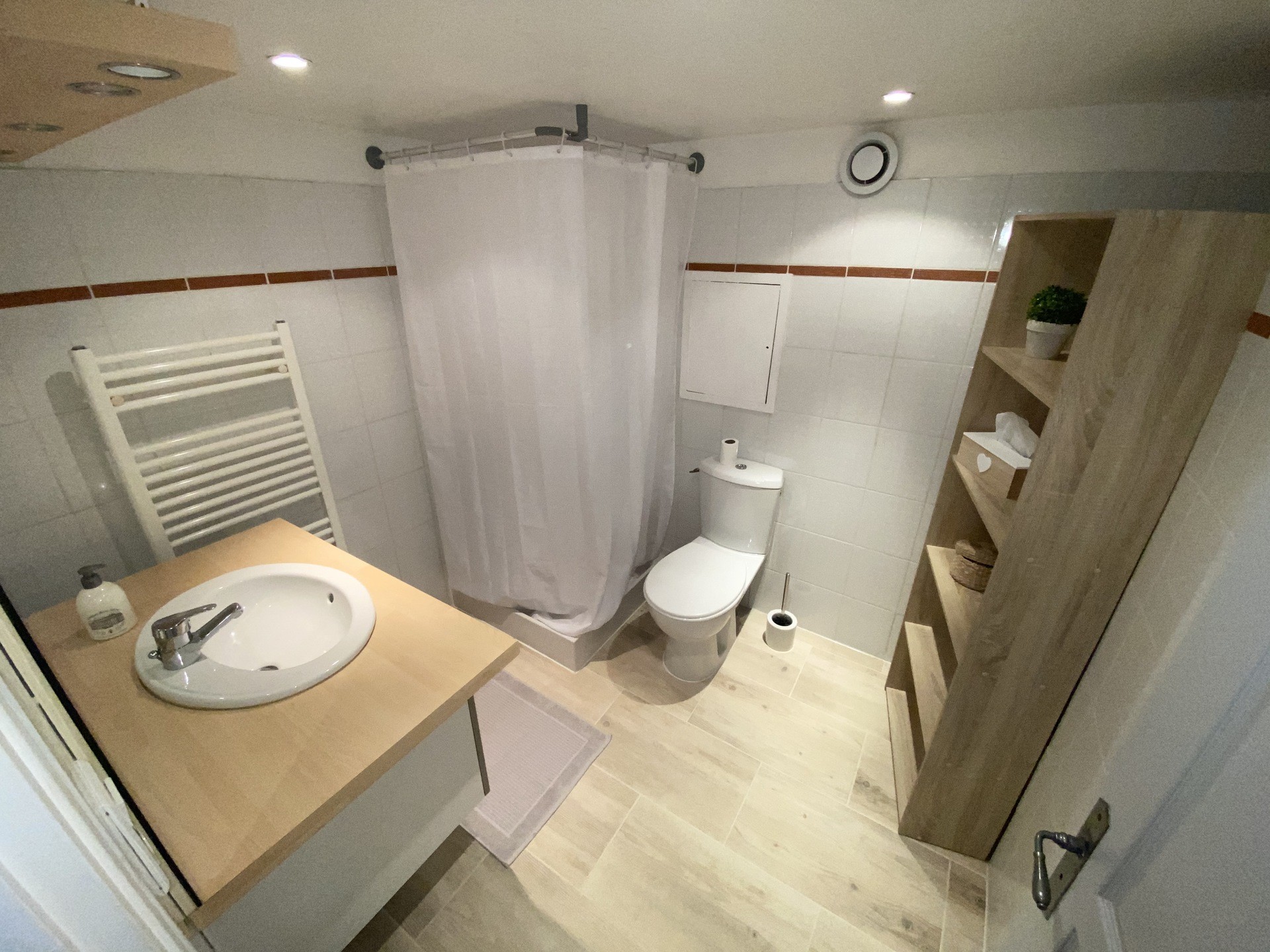 Composé d'une entrée avec placard, salle de bain avec douche / wc, cuisine ouverte équipée (plaque de cuisson, four, frigidaire, équipement de base), chambre sur mezzanine avec lit double (140x190cm) accessible par escalier avec rampe, canapé-lit, lit parapluie disponible sur demande, draps et serviettes fournis.
