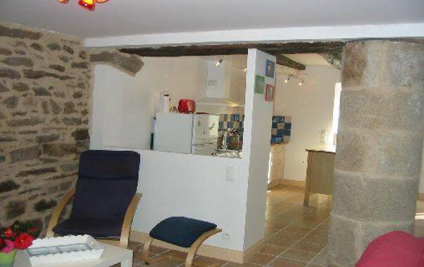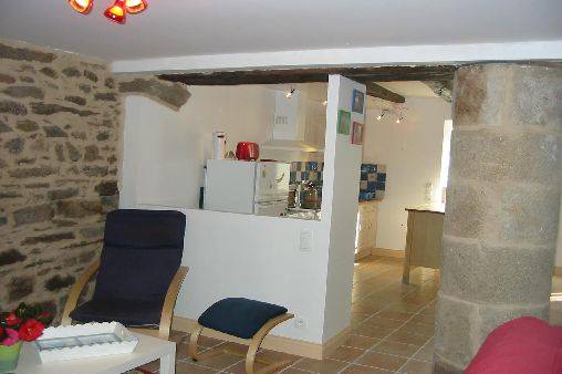 Appartement situé à 30 m. du port de plaisance au rez de chaussée d'une maison tout en granit du 18ème siècle dans les ruelles de Treboul-Douarnenez ; appartement entièrement rénové début 2009 possédant une grande pièce à vivre de 25 m2 comportant :