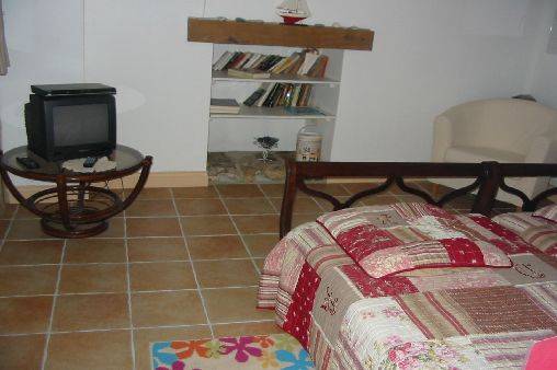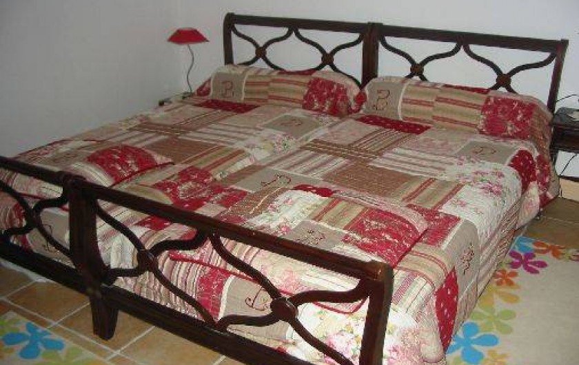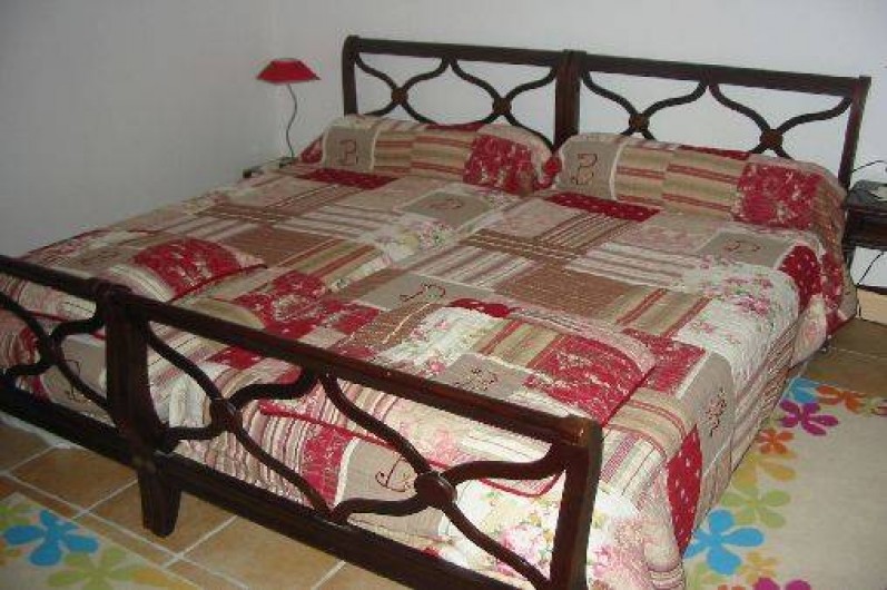 chambre avec grand lit et une seconde chambre avec lits jumeaux (lecteur DVD dans cette pièce)