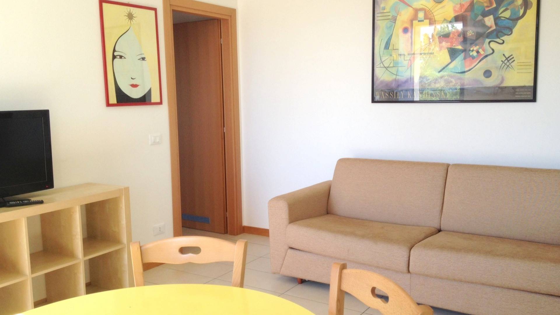 canapé-lit double, une cuisine moderne et une plus petite terrasse. Une salle de bains avec douche. Ces appartements peuvent accueillir jusqu'à 5 personnes.