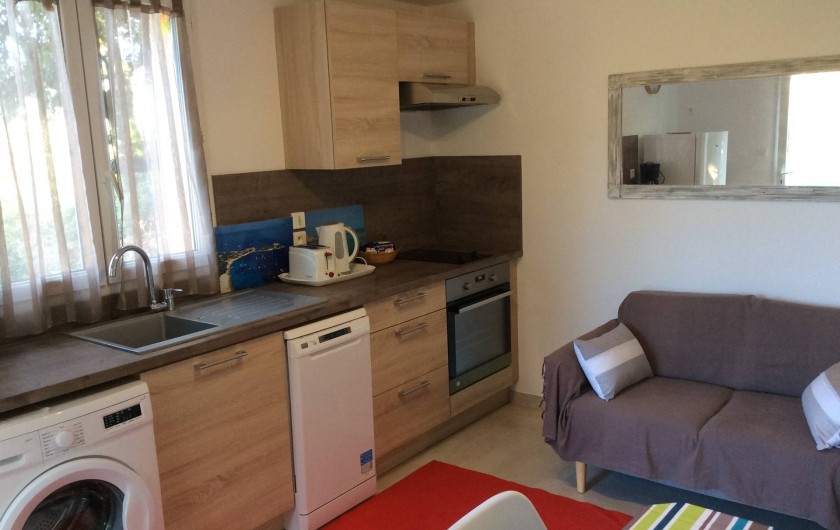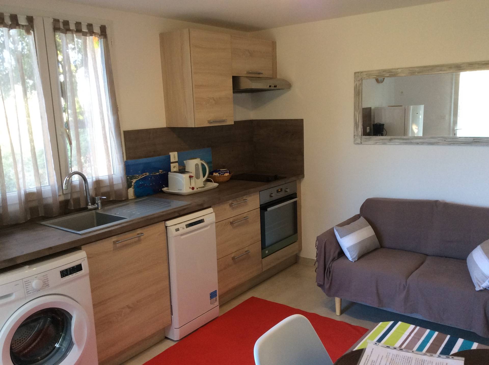 entièrement équipé : lit deux places et lit d’appoint supplémentaire avec matelas confortable avec linge de lit fourni, TV avec TNT, cuisine toute équipée, lave linge, lave vaisselle, fours micro ondes et pyrolyse, plaque électrique et hotte, combiné réfrigérateur/congélateur, logement CLIMATISE, vaisselle, cafetière, bouilloire, grille pain, plancha, sèche cheveux, aspirateur... avec jardin privatif clôturé (mobilier de jardin, transats, logement très bien exposé).