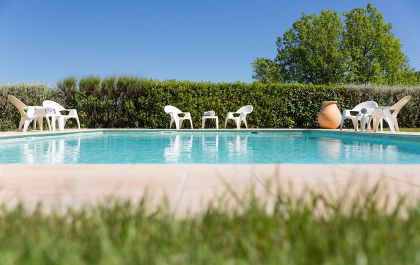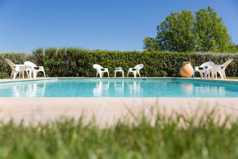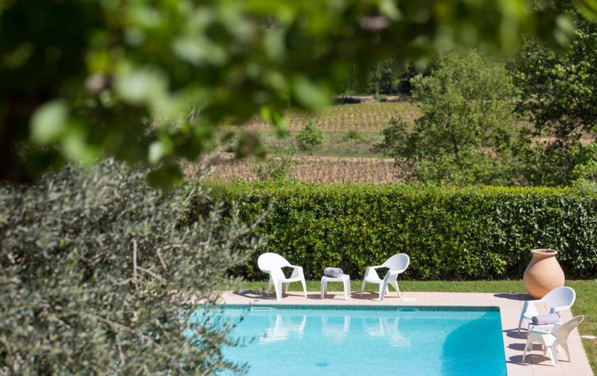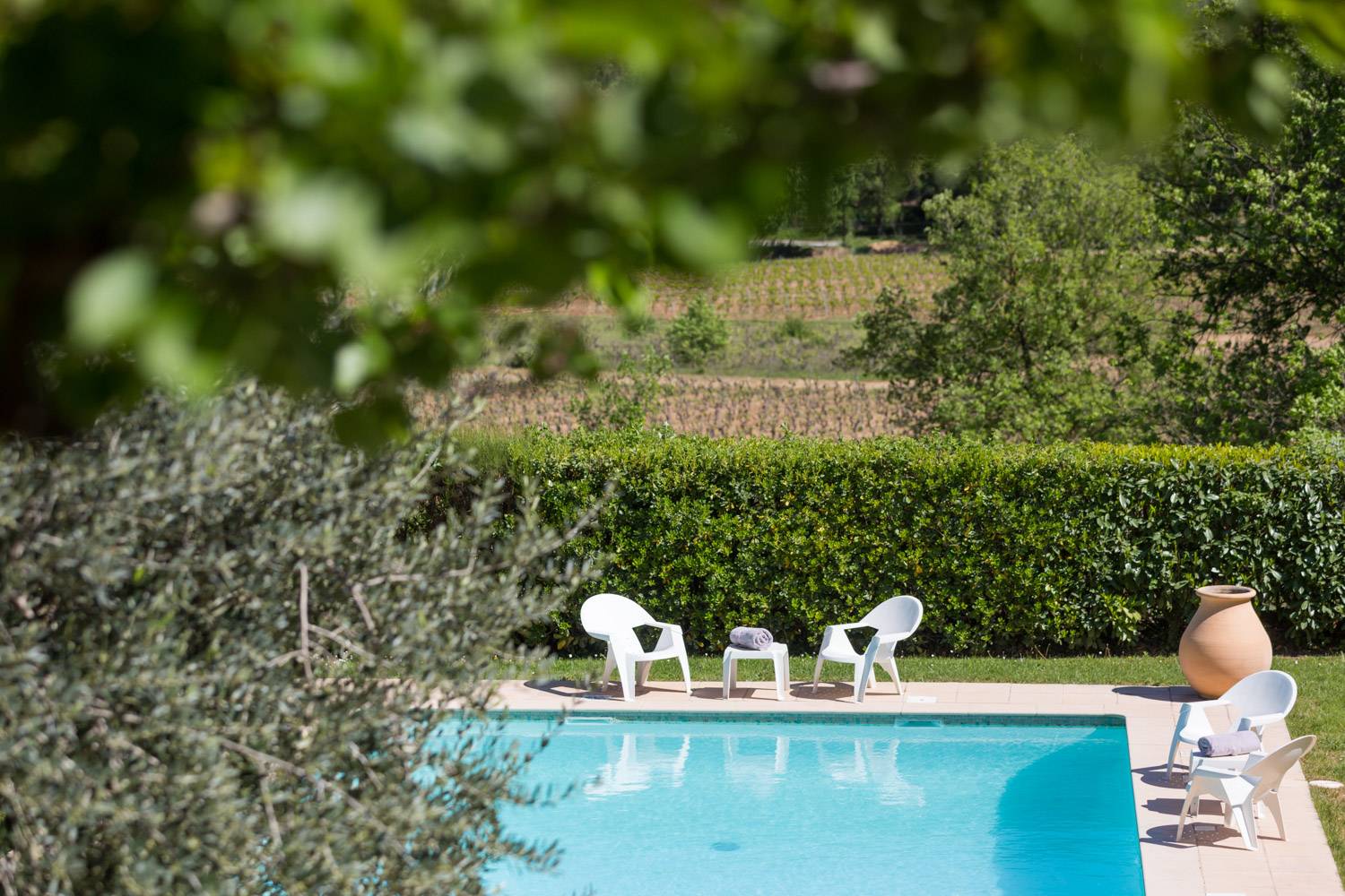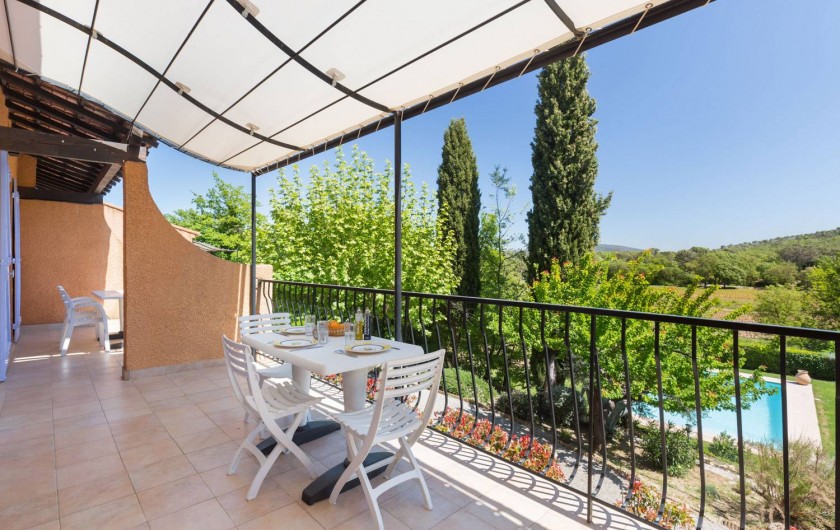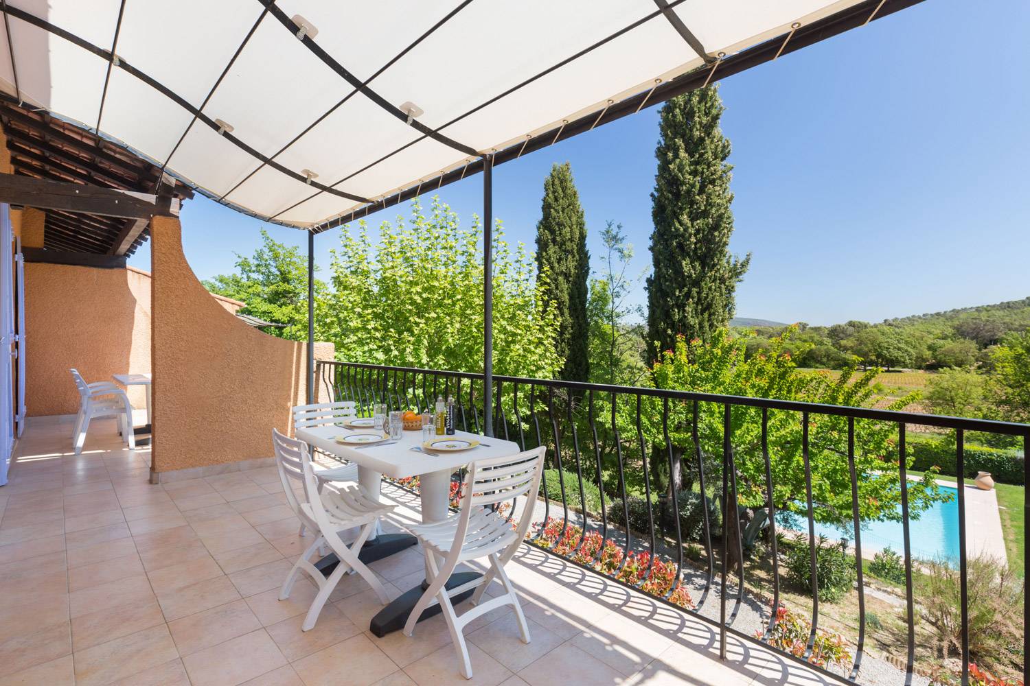 Chaque appartement bénéficie de sa terrasse orientée Sud, depuis laquelle la vue sur la piscine, les vignobles, et les collines est superbe.