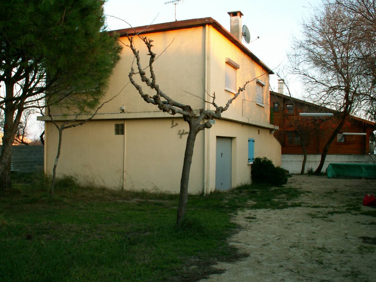 Terrain engazonné arboré de pins sylvestres, lauriers roses ,muriers platanes et peupliers de 700m² entièrement clos par haut mur , ideal familles , enfants , retraites , curistes ( Balaruc les bains a 15 kms) arret bus devant portail),animaux acceptés