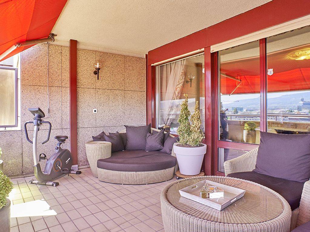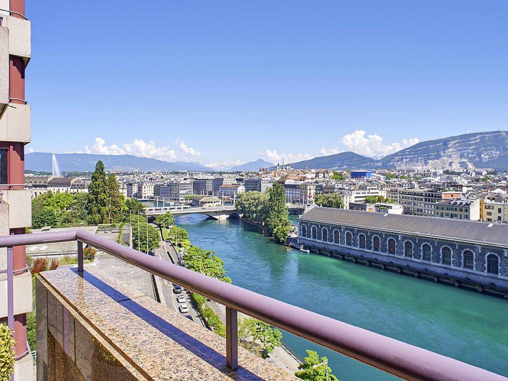 En plein centre-ville de Genève, appartement entièrement aménagé avec 2 terrasses, vue imprenable sur le Centre Ville de Genève et les Alpes, à côté du fleuve Rhône.