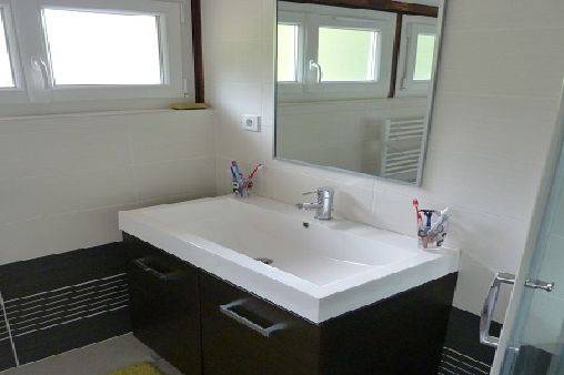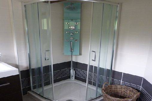 salle de bain avec douche-vasque-radiateur sèche serviettes-