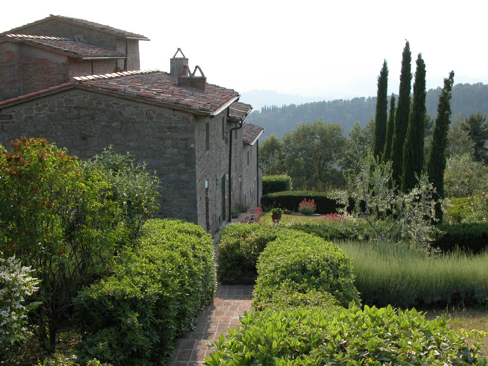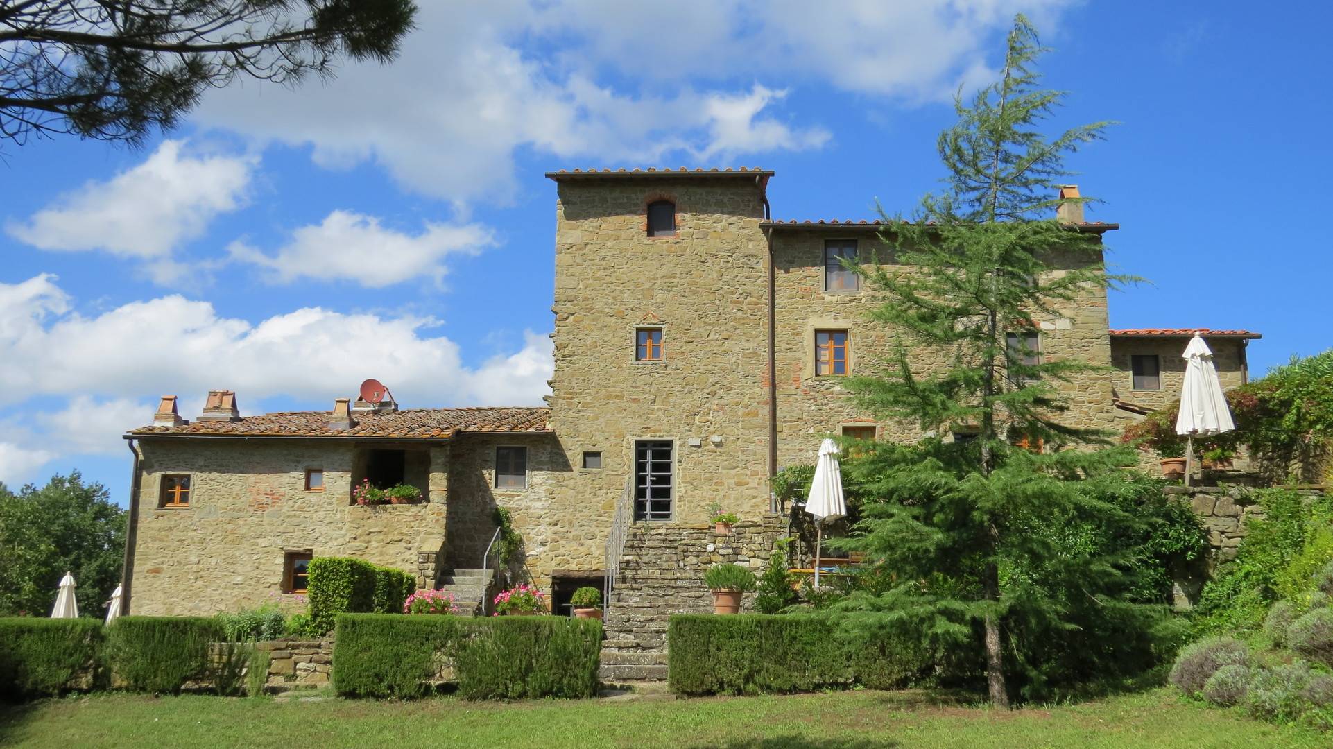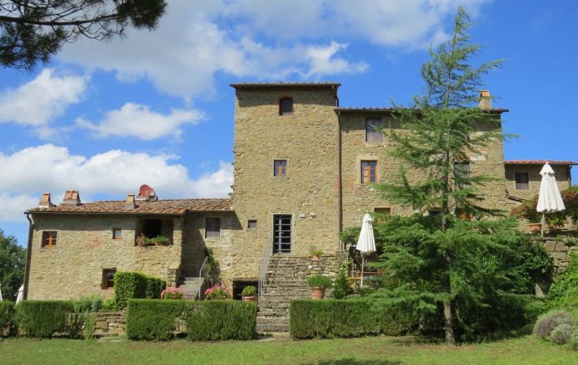 Campolungo, un ancien vignoble dont les origines remontent au moyen âge, est situé au cœur de la région du “Chianti Classico“, entre Greve et Radda, au milieu des champs de vignes et d’oliviers. Vous êtes littéralement au cœur de la Toscane. Admirez les collines qui vous entourent, les jaunes éclatants des genets, le rouge des coquelicots et la senteur des lilas. Penchez vous également sur les bordures odorantes de romarin et vous aurez la sensation d’être dans un paradis des fleurs.