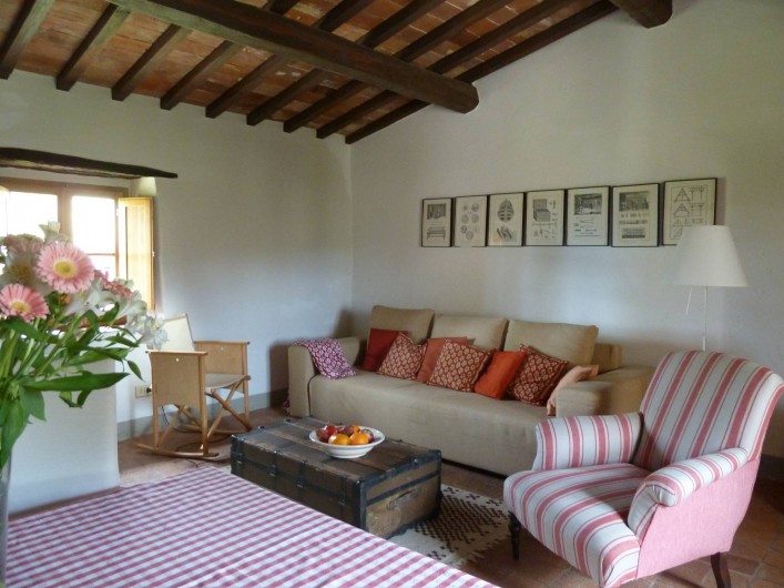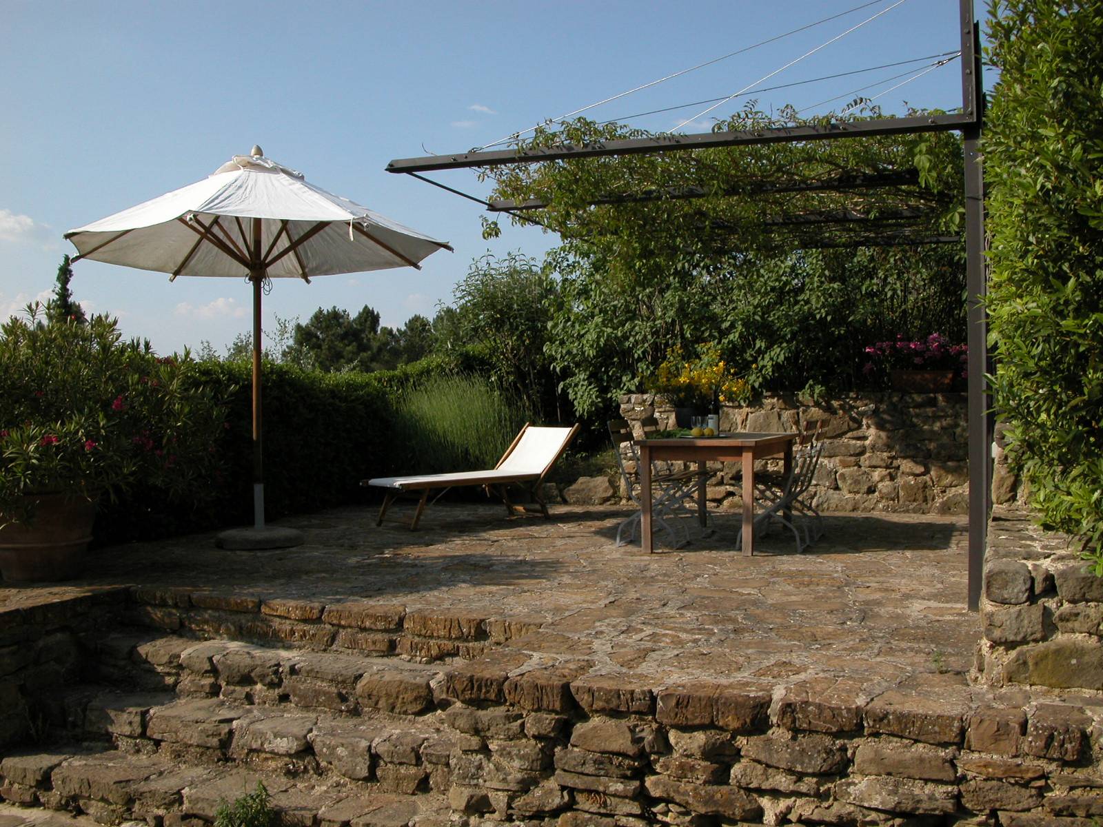 A quelques pas de la petite Piazza, vous trouverez l’appartement „il Lungo“. Les chambres de cette charmante appartement sont harmonieusement réparties sur un étage. La restauration moderne n’a pas affecté les parties plus traditionnelles. La salle de séjour est ouverte sur la cuisine où vous trouverez tout l’équipement moderne, un plan de travail et une grande cheminée traditionnelle. La grande salle de séjour est équipée d’une table et d’un canapé confortable. Les deux chambres, orientées vers l’ouest, restent toujours fraiches et agréables durant l’été. La terrasse privée est située au milieu du jardin attenant.