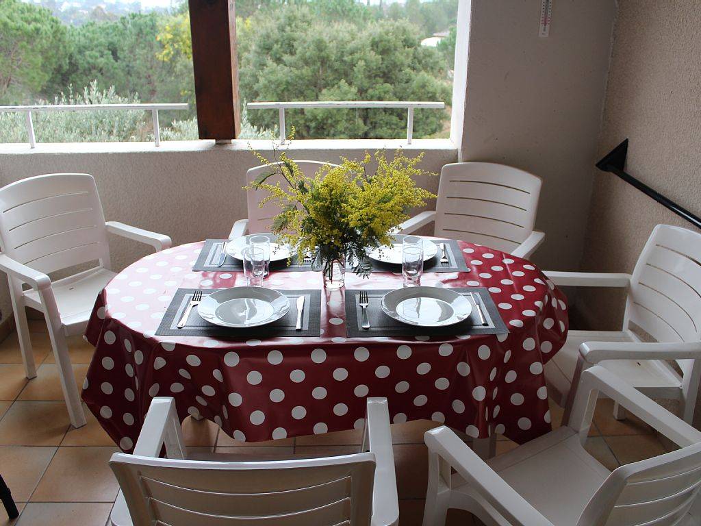 Appartement en duplex avec vue imprenable sur la mer et le golfe de St- Tropez. Au coeur d'un domaine, de 25 hectares arboré. ( esprit village) Idéal pour des vacances reposantes ou actives, nombreuses activitées pour petits et grands ( piscine à vague, piscine chauffée de avril à novembre) Tennis, ping-pong, football, basket, espace pour enfants, animations nocturnes, sentiers de ballades, Lac japonais, spa-massage, etc) l'appartement est composé de 2 chambres, 2 salles de bain, séjour avec kitchenette totalement équipée ( lave- vaisselle, vitro, réfrigérateur, congélateur,