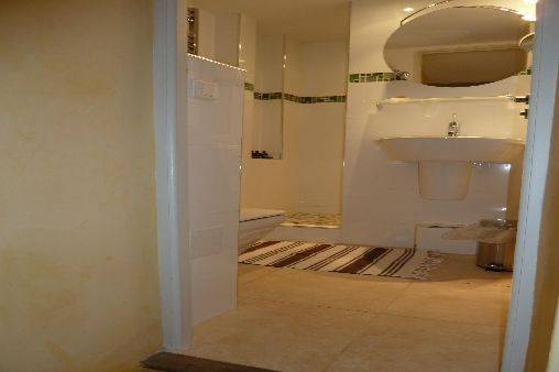 . Il est composé de 3 chambres ( une avec un lit de 140cm de large, une avec un lit de 160cm de large et une avec deux de 90cm de large ) et de 2 salles de douche ainsi que d’une salle de bain. 3 wc complètent l’équipement sanitaire.
