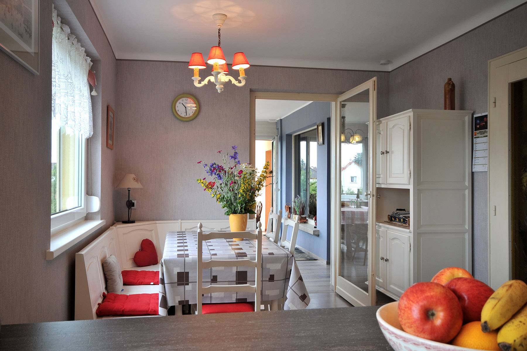 Location rez de chaussée dans une maison individuelle. 1er étage occupé par les propriétaires. Située à 4 km de Saverne , 30 km de Strasbourg et 1h de Colmar. Tous commerces sur Saverne. Appartement tout confort.
