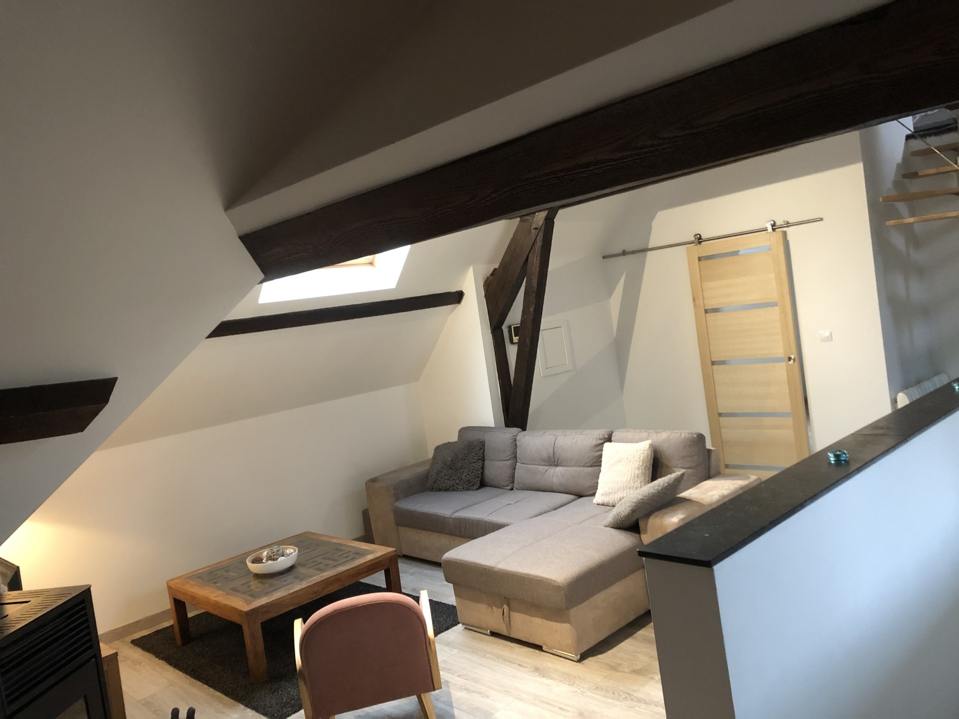 Appartement de charme, poutres apparentes, rénové avec goût dans quartier calme.