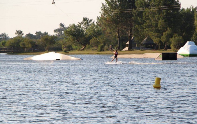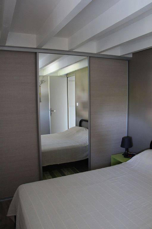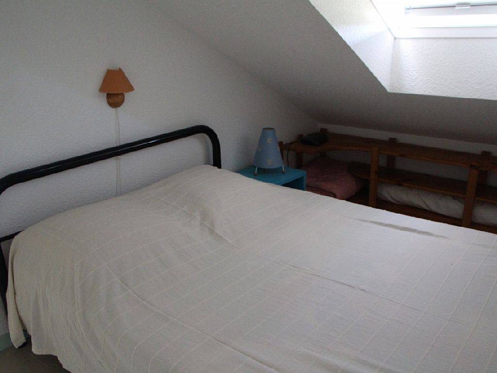 A l'étage : 1 chambre, WC, douche, mezzanine avec 1 lit, proche des commerces, jeux aquatiques pour enfants et adultes, centre équestre, kyte surf, pédalos, canoë, catamaran