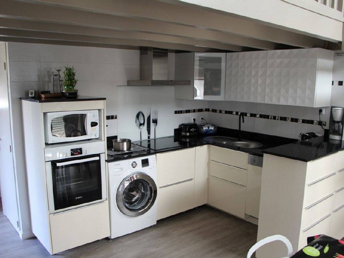 Duplex T3 refait, cuisine aménagée,(plaque induction 3 emplacements, lave linge, lave vaisselle, réfrigérateur congélateur, four pyrolyse,) sdb, wc séparés, 1 chambre, séjour, coin salon,(TV grand écran plat) cellier,(prêt de 2 bicyclettes), grande terrasse vue sur le lac (salon de jardin 2 chaises 6 fauteuils et 1 desserte).