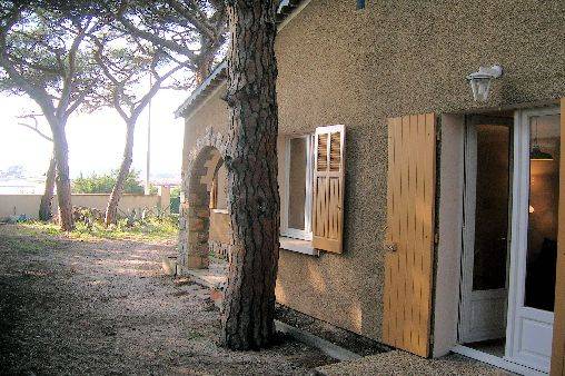 Villa composée de deux appartements en rez de jardin (dont 1 seul en location) dans pinède en bordure de l'Hippodrome, en face des salins du Pesquier, à 400 mètres de la mer et 1 km du port de Hyères. Jardin de 500 m² clôturé (parking). Deux pièces principales. Séjour avec convertible 2 places. Chambre avec 2 lits jumeaux. Cuisine équipée, four, plaque vitro céramique, MàL vaisselle et linge. TV. Salle de bains, WC. salon de jardin, barbecues.