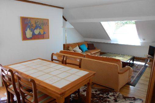 Duplex confortable avec vue sur foret, montagne et hameau. Comprenant une grande cuisine indépendante aménagée, salon-salle à manger, chambre ( lit deux personnes), salle de bain, cellier. A l'étage deux chambres mansardées (2 lits deux personnes) avec Velux. Terrasse aménagé et balcon. En été pelouse avec salon de jardin et BBQ. Parking privé clos (2 véhiculés). Draps et serviettes fournis, matériel de puériculture à la demande