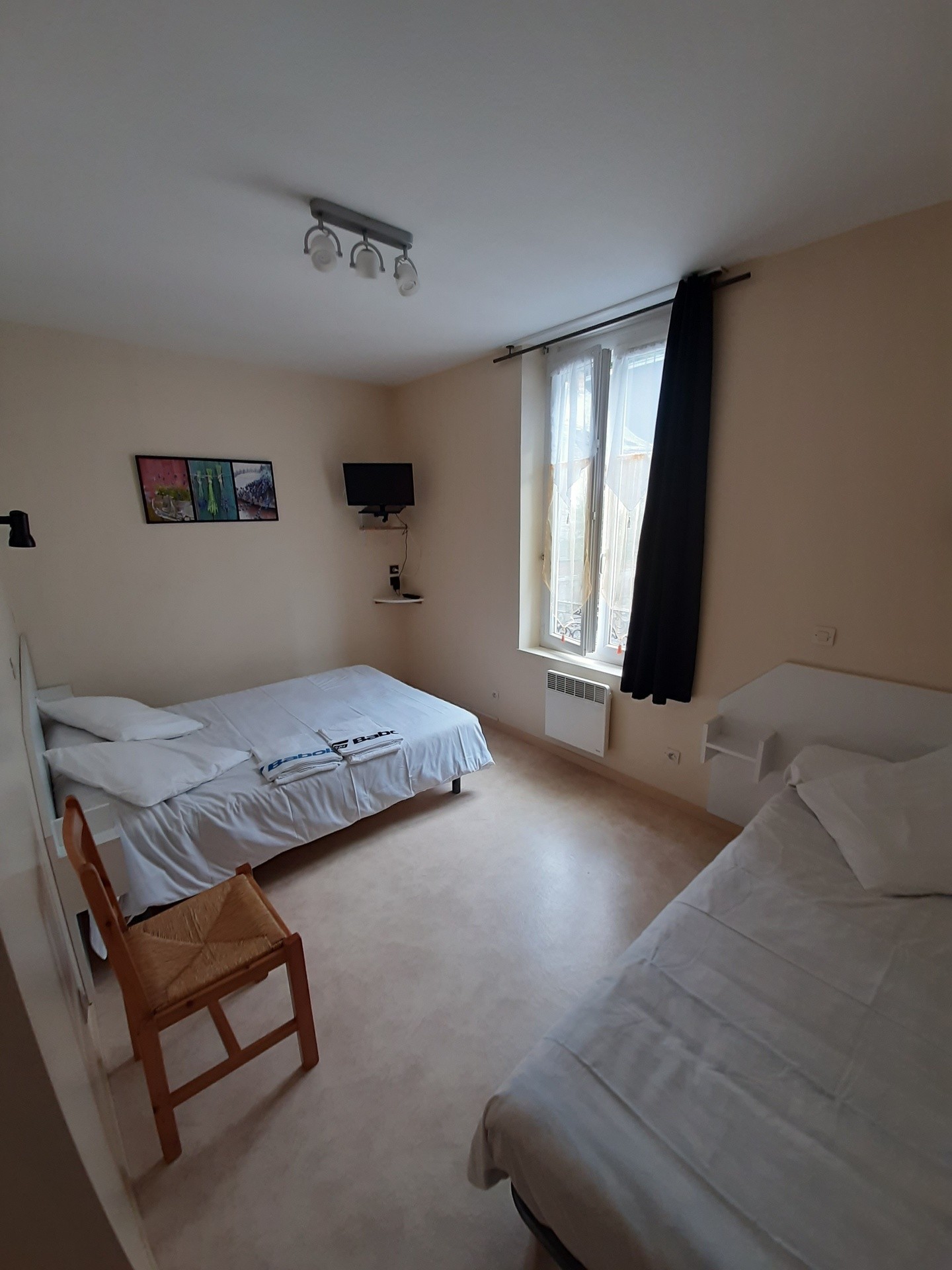 Une chambre séparée avec deux lits un de 140 x 190 et un de 90 x 190 , placard, penderie , TV.