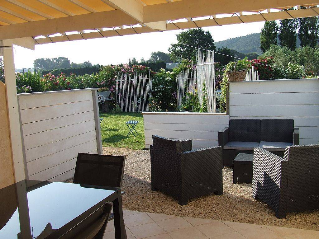 rez de chausse salle a manger cuisine 25m2 ,salle de bains lavabo douche 4m2 a l'italienne un wc separe 1m2 ,etage chambre mezanine 18m2 un lit 180,une penderie deux tables de chevets une petite table pour ecrire, la climatisation,un velux pour voir le ciel et ces etoiles.a l'exterieur terrasse couverte 16m2 avec table et 4 chaises pour vos repas un coin salon de 16m2 avec un canape de fauteuils une table basse et apres le jardin prive 50m environ avec table et chaises en fer forge, des chaises longues pour bronser,separe par de la vegetation(laurier)un terrain de boules,puis un espace couvert … avec une table de ping pong Lire moins Lire la suite