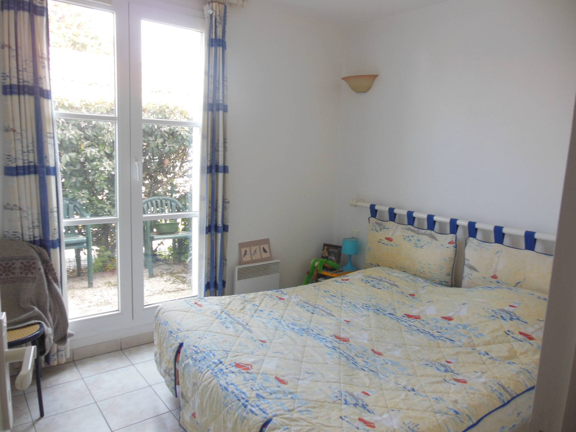 En rez de chaussée avec terrasse, dans résidence privée et sécurisée, appartement T3 avec 2 chambres (dont 1 avec lit 160), 1 avec 2 lits individuels superposés, possibilité couchage 2 personnes dans salon (canapé-lit) cuisine américaine, lave-vaisselle , salon-salle à manger, 1 salle de bain et 1 salle de douche, WC séparés, dressing, local lave linge, parking individuel local vélos dans la résidence, piscine privée,à proximité immédiate de tous commerces, marché local, salle de cinéma, restaurants; grande plage de sable à 150 mètres