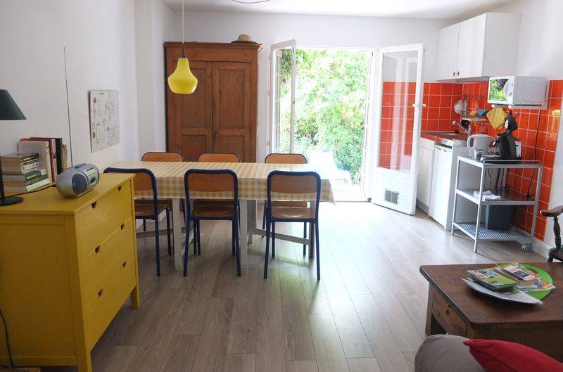 Il est composé d'une grande pièce de séjour avec une cuisine équipée de 2 chambres à coucher et d'une salle de bain (douche à l'italienne). Il se situe en rez de jardin, à 15 m de la piscine.