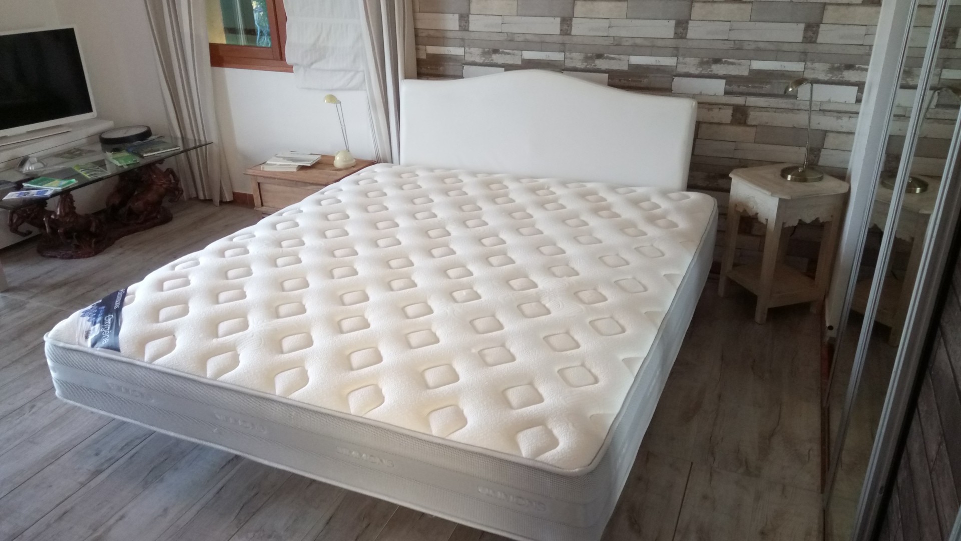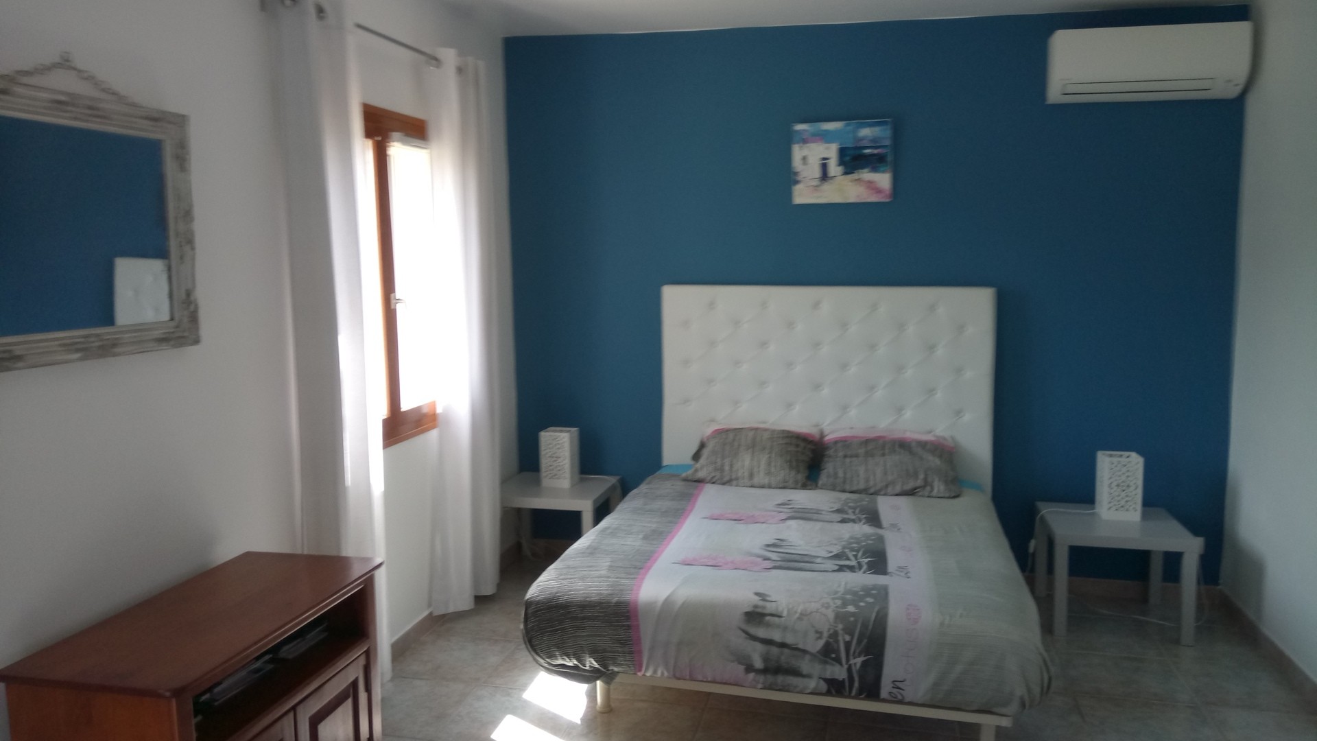 Séjour : avec climatisation neuve 1 lit double avec climatisation neuve 1 lit double NEUF QUEEN SIZE ( lits faits complets, draps grandes tailles offerts )180 x 200, table 6 pers, ecran plat 55 POUCES , lecteur BLURAY DVD, CD radio , coffre fort,