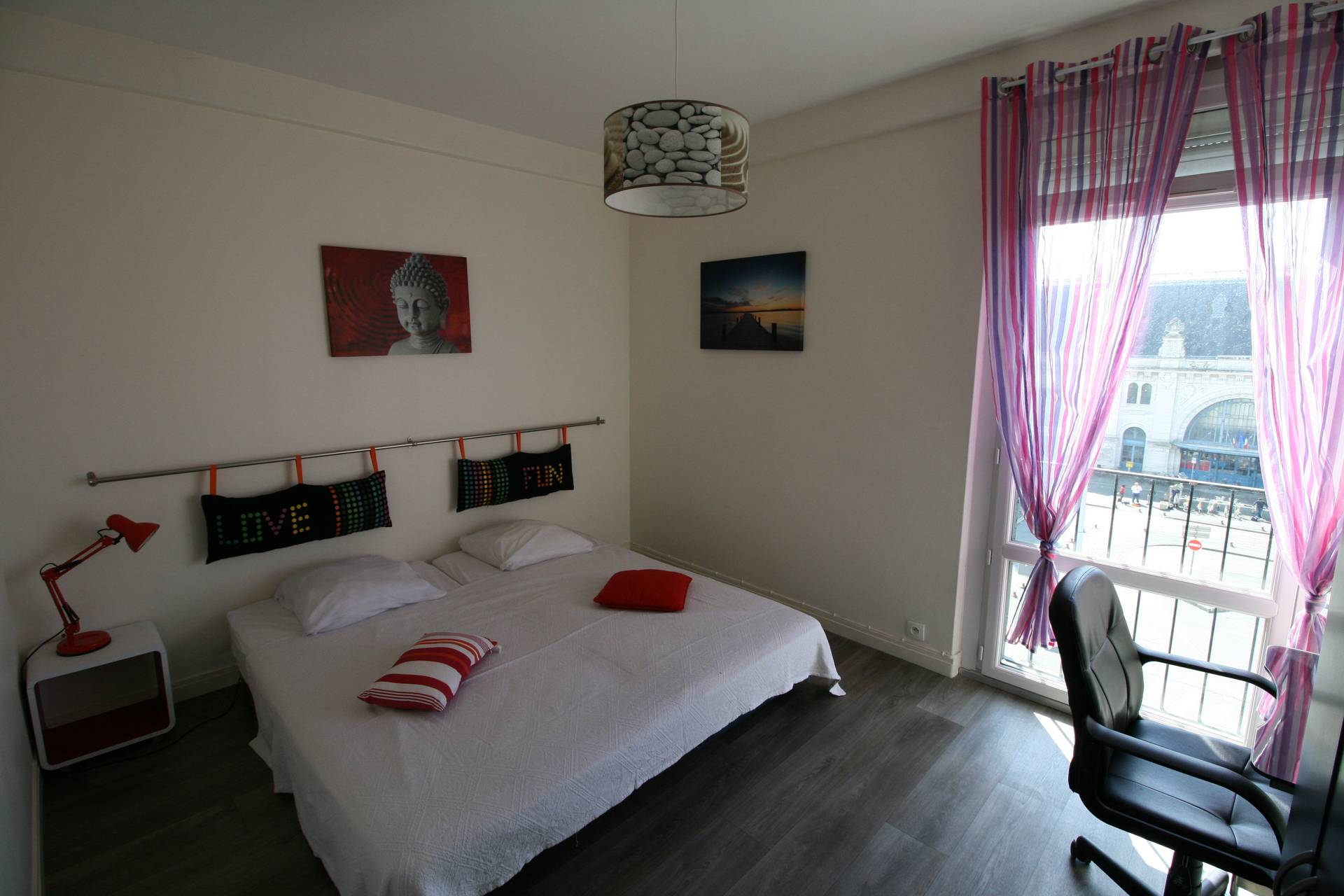 LA ROCHELLE Appartement T4 de 85 M2 classé trois étoiles par l'office de tourisme de La Rochelle,à 200m du Vieux Port et à proximité du centre de la vieille ville et du marché, juste en face la gare SNCF comprenant 3 chambres avec lits double de 90 cm chacun pouvant être rapprochés pour faire des lits de 180 Cm, un grand salon avec une table ronde 6 chaises deux fauteuils,2 poufs et un clic-clac, une cuisine(neuve 2013) avec four ,plaque électrique, micro ondes,lave vaisselle, table avec 4 chaises et tous les