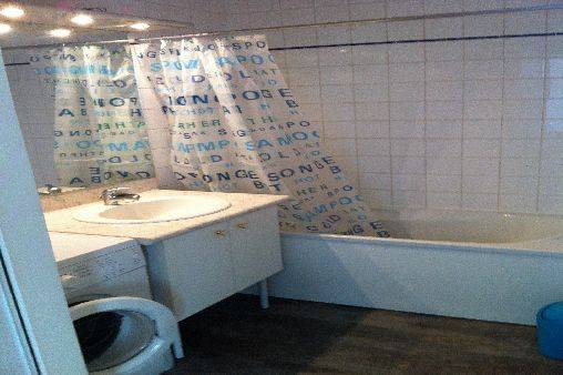- Salle de bain équipée d'une baignoire, lavabo, et placard
