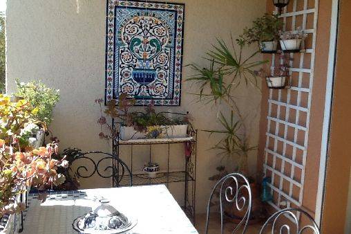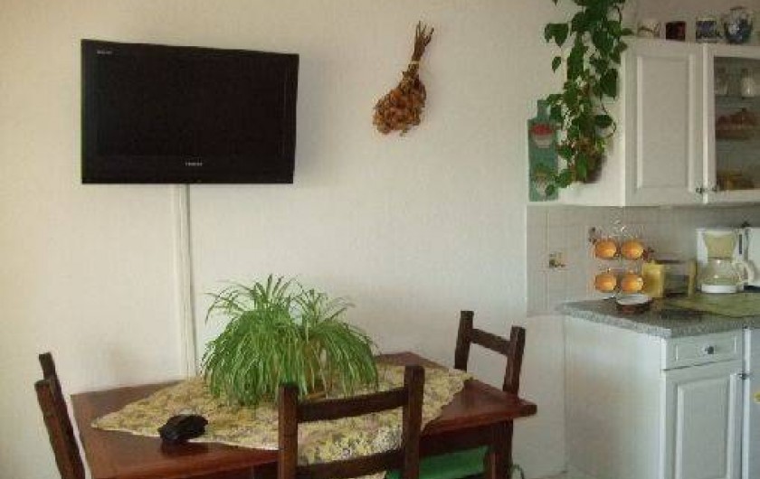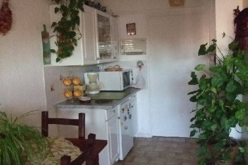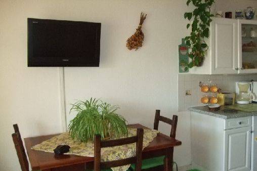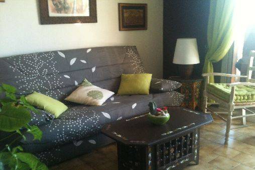 1 chambre avec un lit 140 , télé écran plat , 1 salon avec salle à manger, télé écran plat, un coin cuisine avec 2 plaques électriques, un lave-linge, un frigo avec petit compartiment congèl, équipement pour cuisiner, une banquette lit pour 2 personnes, une salle d'eau avec WC et douche italienne, une loggia avec salon jardin et store.